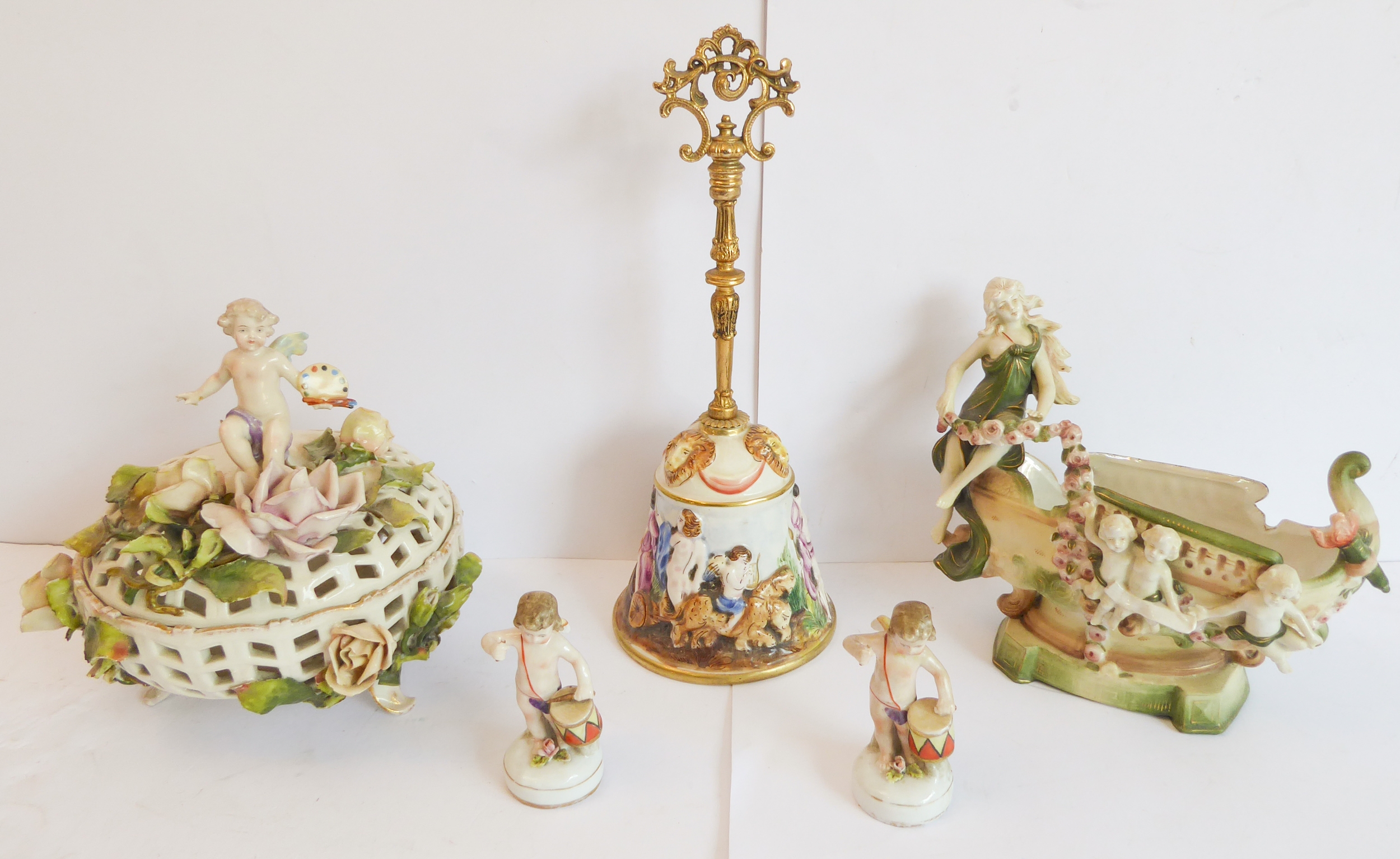 A group of five comprising: a Capo di Monte style circular ...