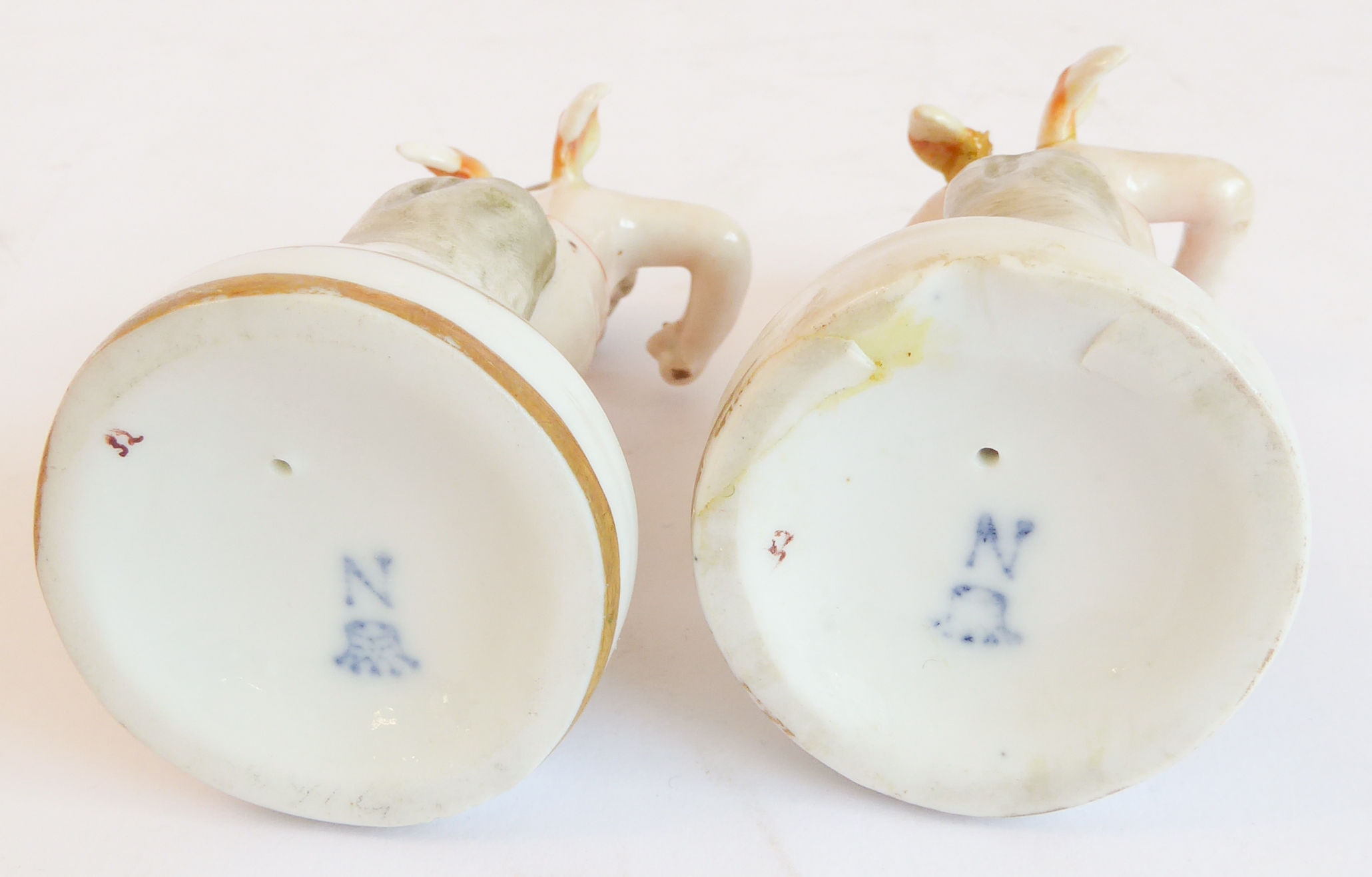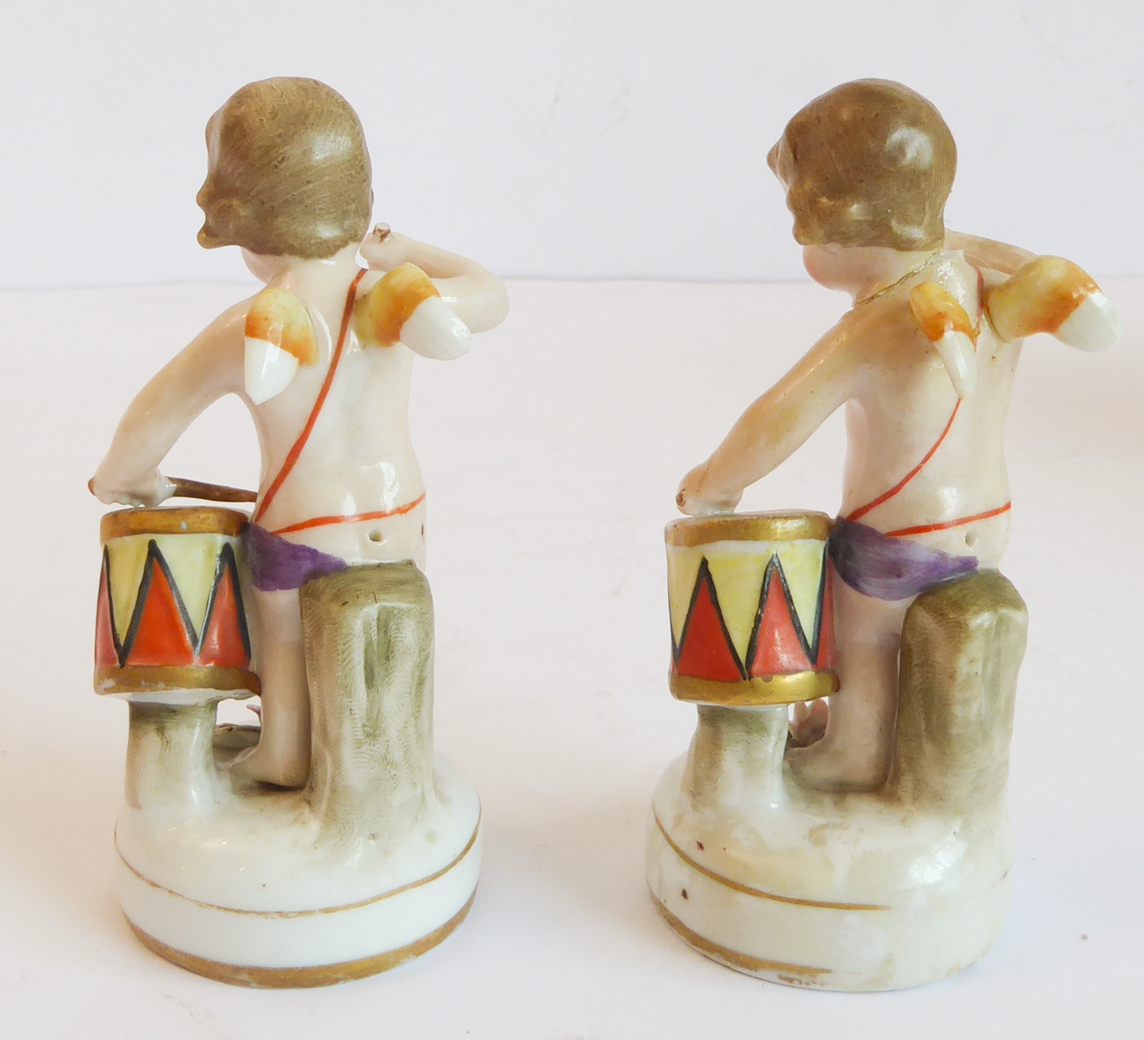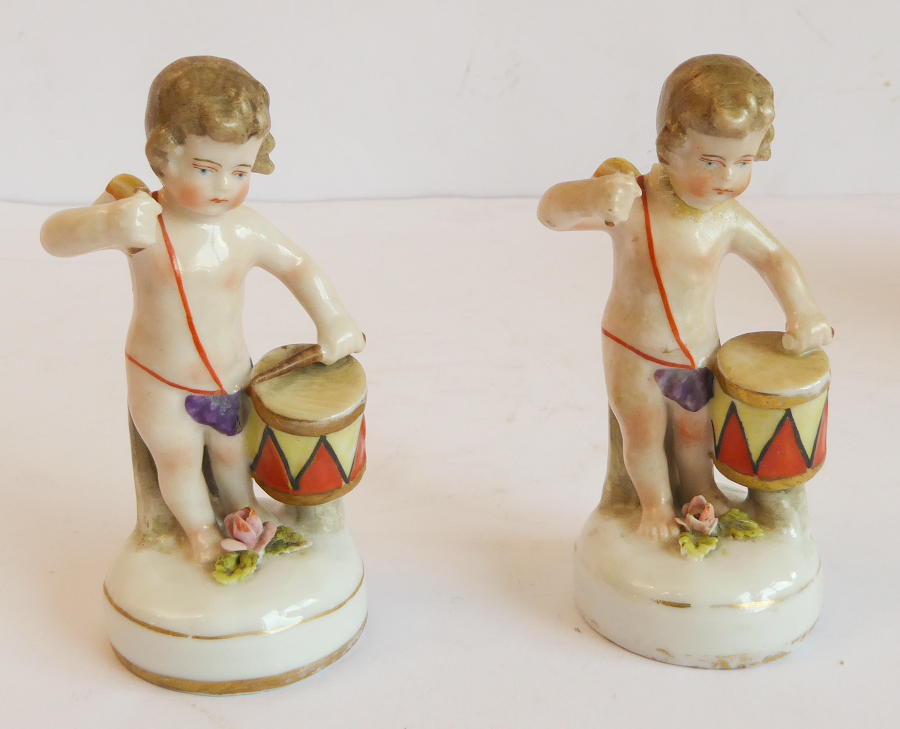 a pair of Naples (Capo di Monte) porcelain cherubic drummer figures