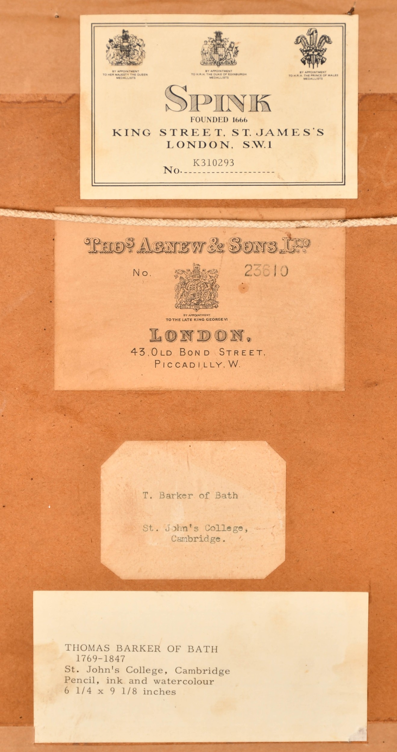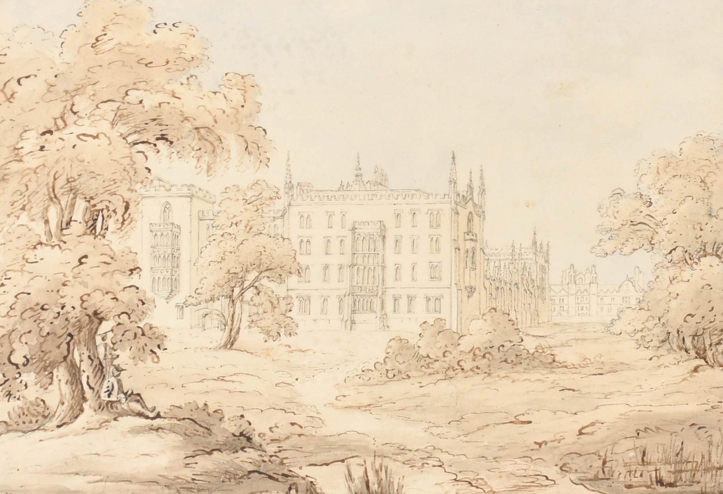 Thomas Barker of Bath (1769-1847) British. "St. John's College, Cambridge", Watercolour and pencil, Inscribed on labels verso, 6.25" x 9.25" (15.8 x 23.5cm) Provenance: Thos Agnew & Sons Ltd, London; Spinks, London
