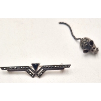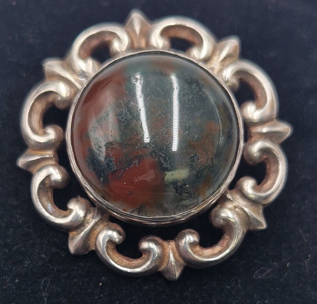 SILVER (925) /AGATE STONE SET BROOCH (Old)