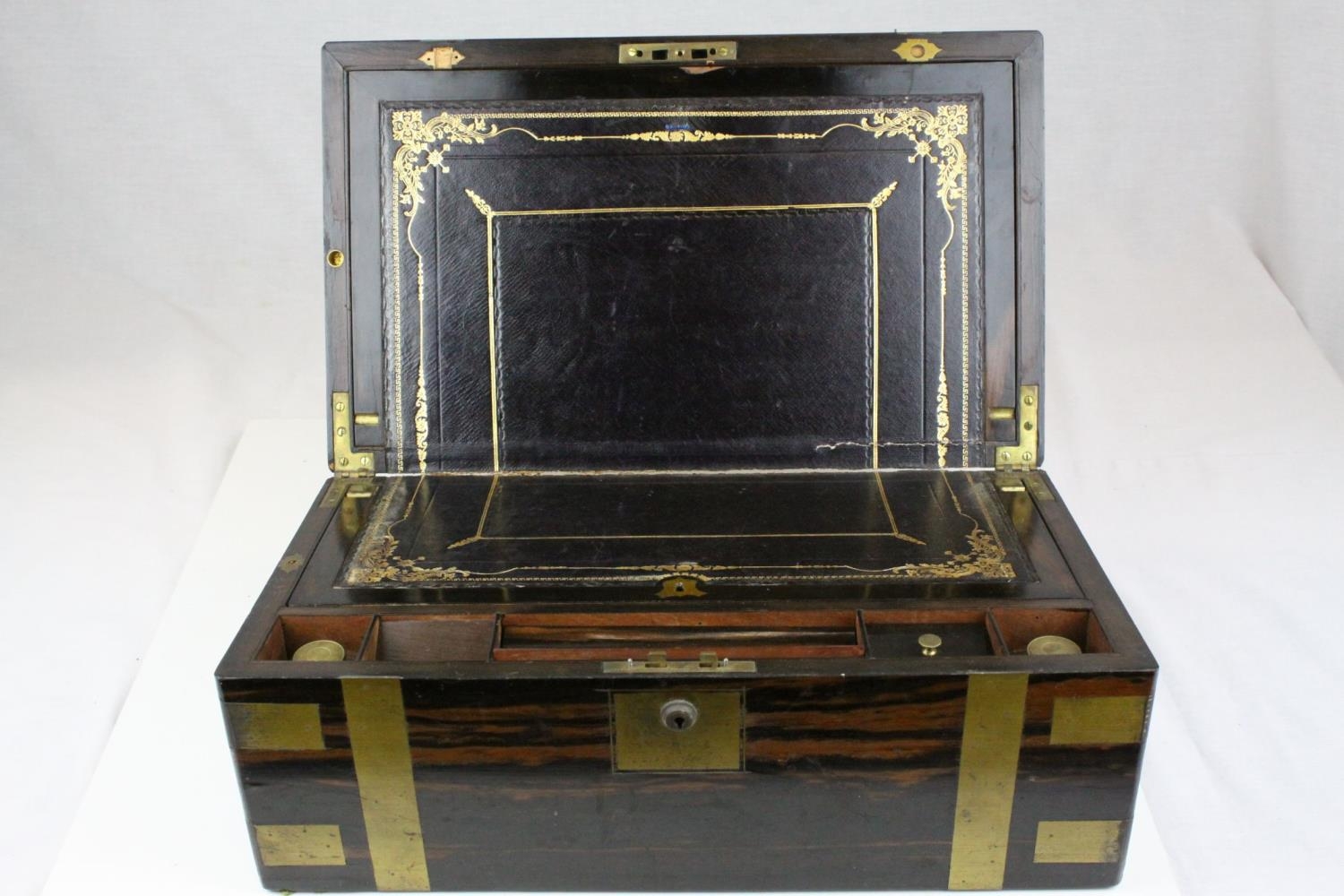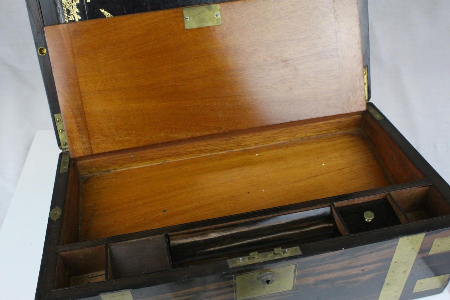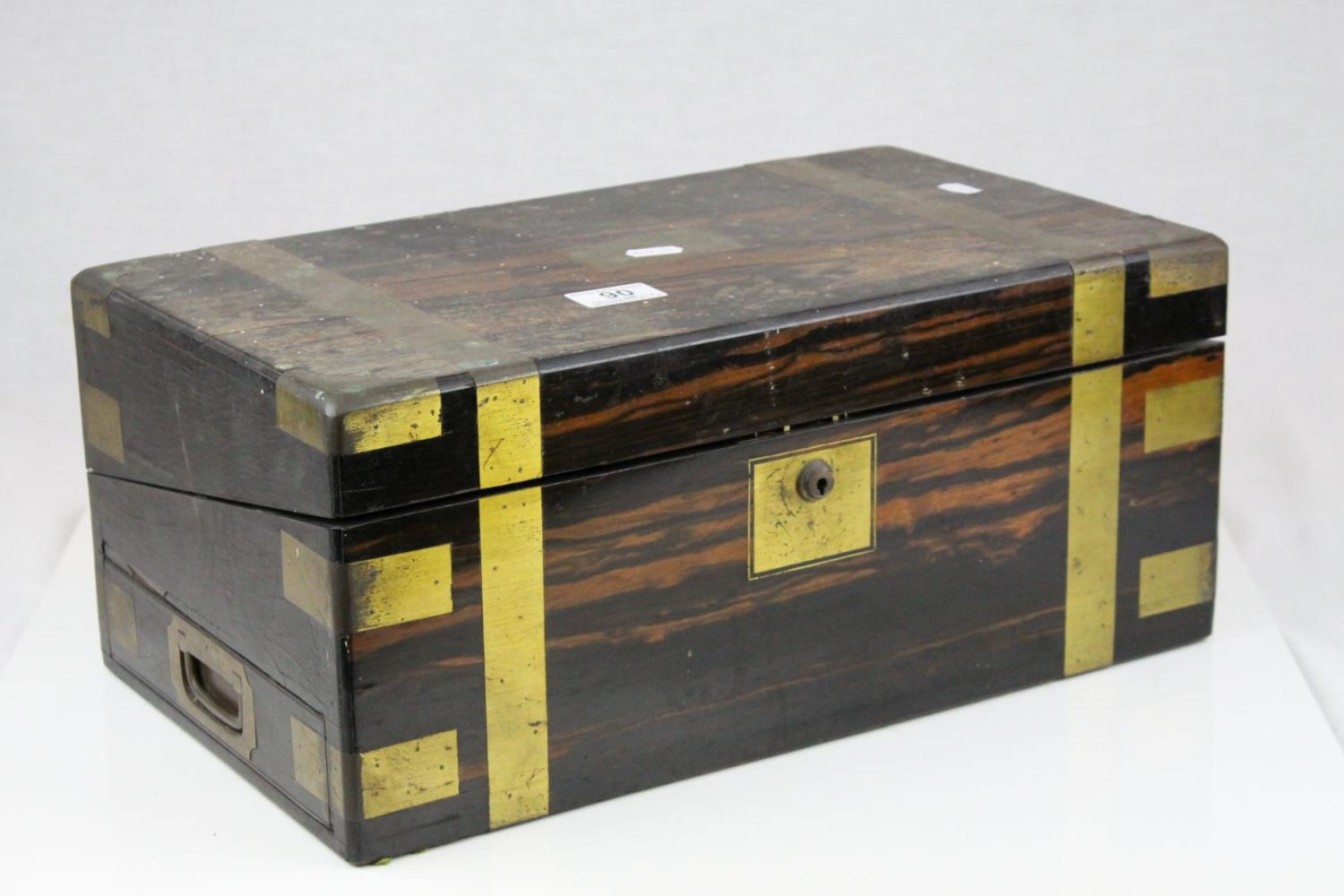 19th century Coromandel Campaign Writing Slope, brass bound with recessed handles, 45cms wide x 19cns high