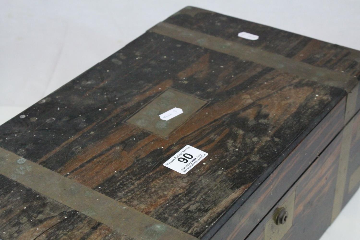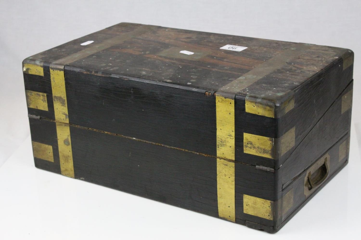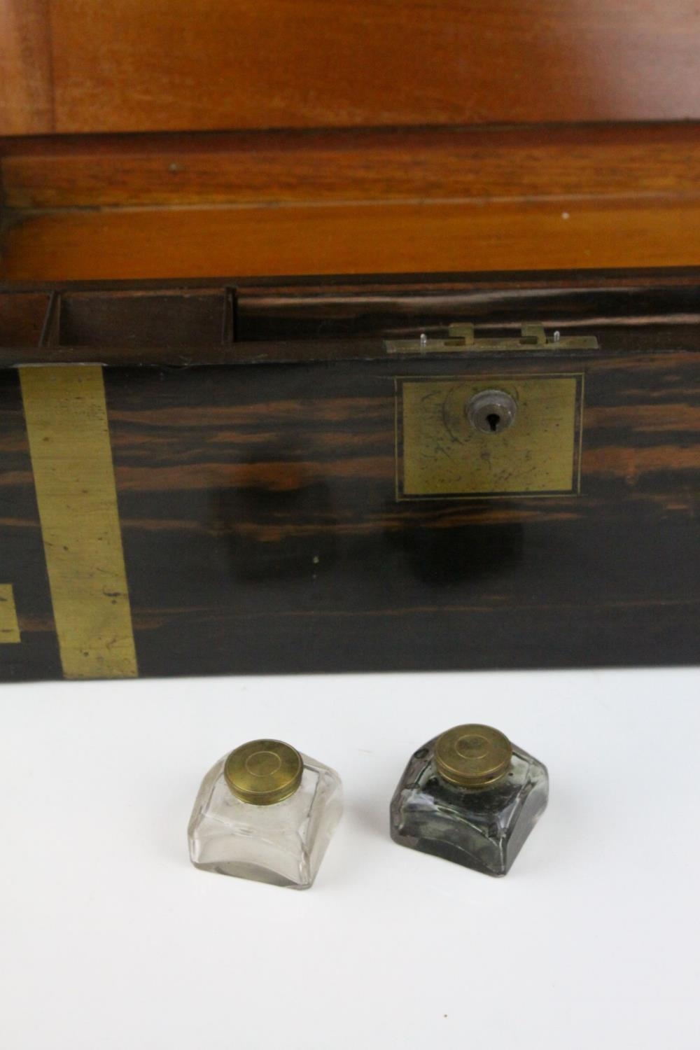 19th century Coromandel Campaign Writing Slope, brass bound with recessed handles, 45cms wide x 19cns high