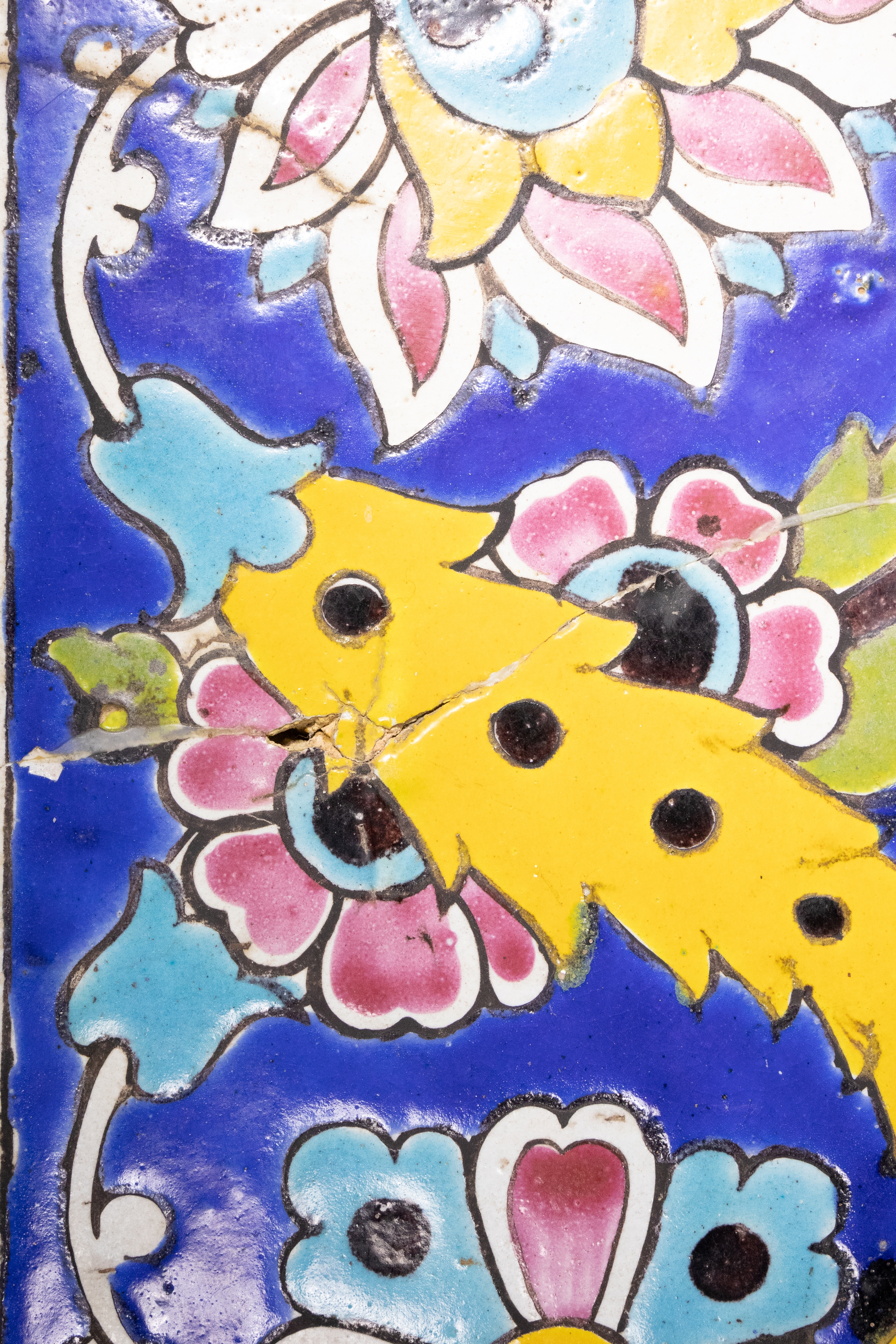 A Qajar or Zand Polychrome Tile with Floral and Foliate Motifs, 18th Century.