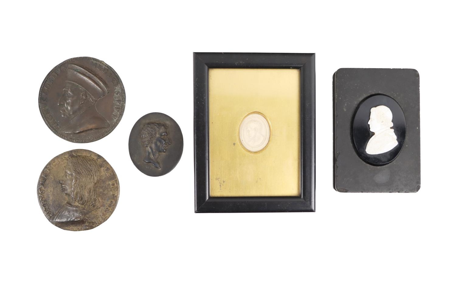 * Petrus Franciscus Me Dices', The reverse inscribed 'Incantantis Nona V Diet Voclm,' with serpent center, together with three cameos of ancient figures political and religious, as a lot. (5)