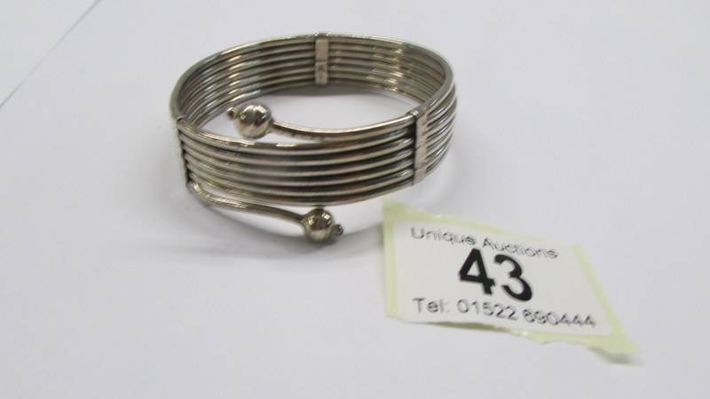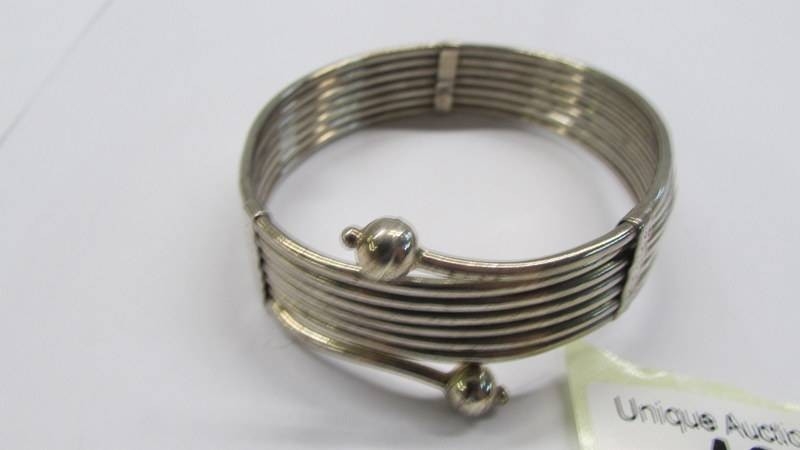 A silver bangle.