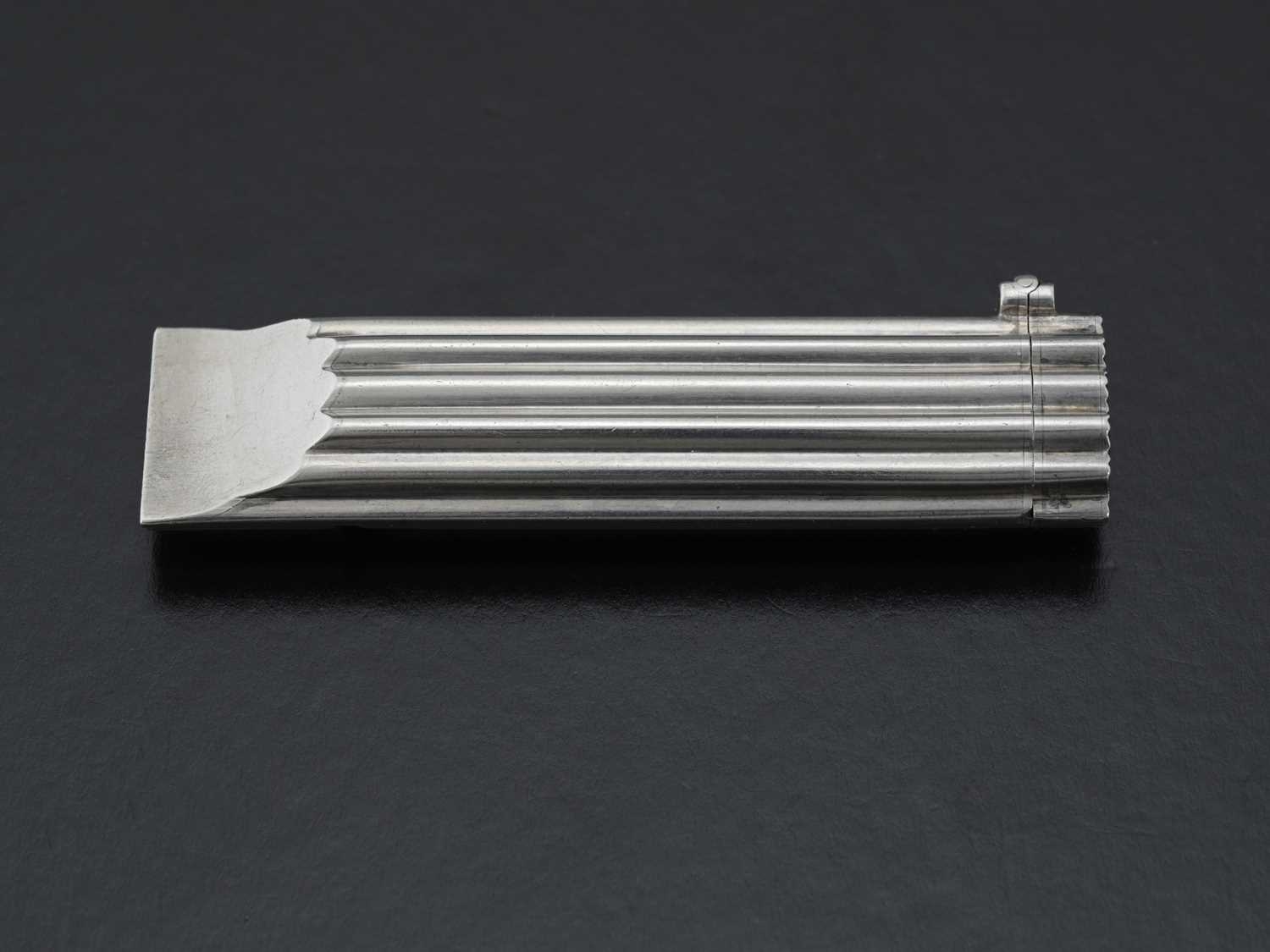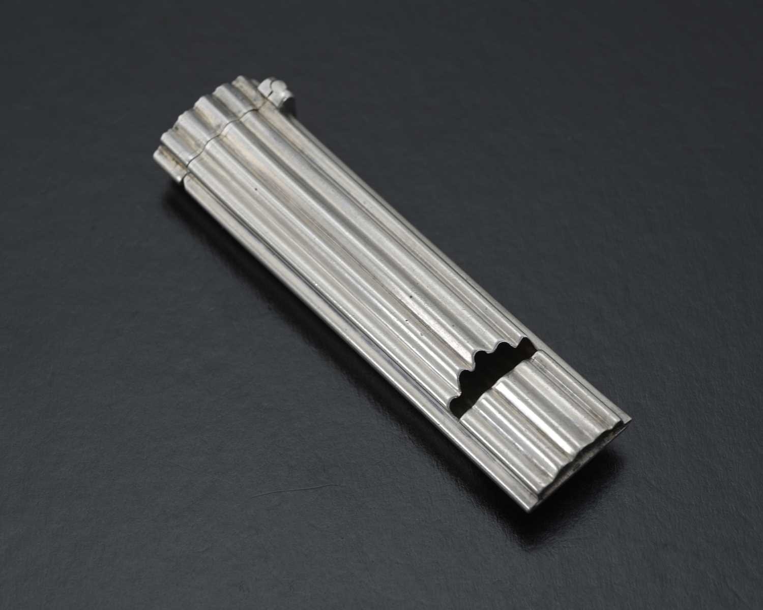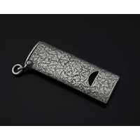 A Victorian silver combination whistle and vesta case, by Sampson Mordan, London 1884, of oval section, with fluted body, the hinged cover with integrated striker, and gilt interior, length 6.5cm, weight 19g/0.61ozt approx