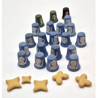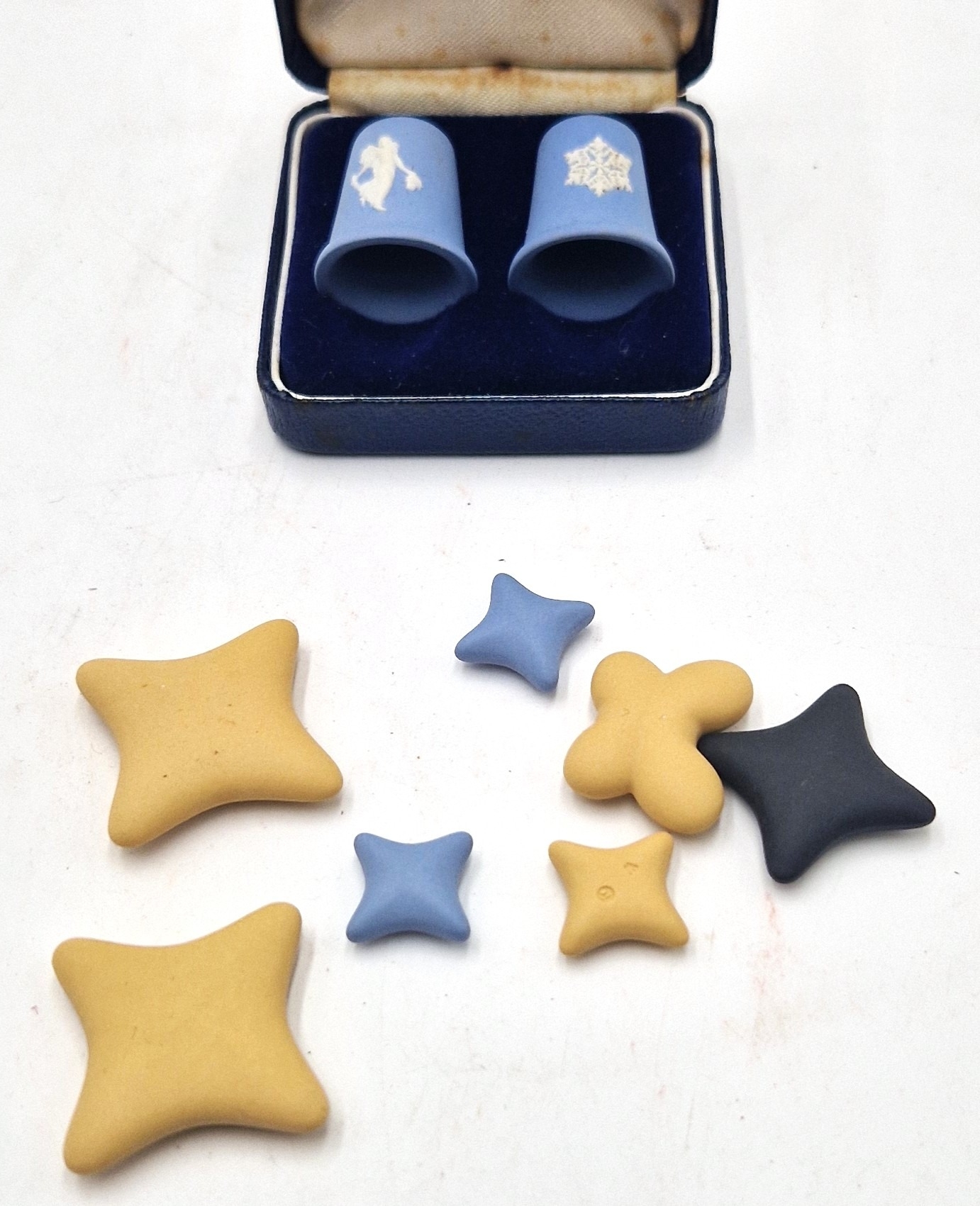 WEDGWOOD JASPER WARE (Boxed Set Of Two) THIMBLES IN THE DANCING HOURS DESIGN Plus WEDGWOOD JASPER WARE SHAPES (5)