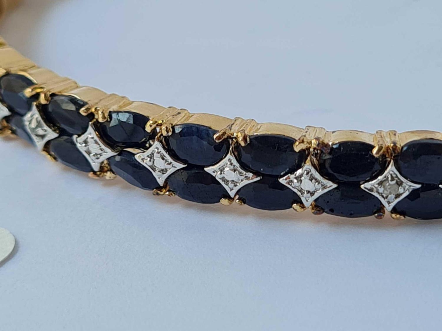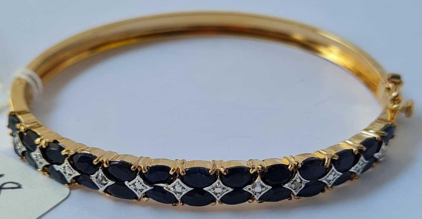 A good silver gilt bangle set with two rows of black sapphires and diamonds