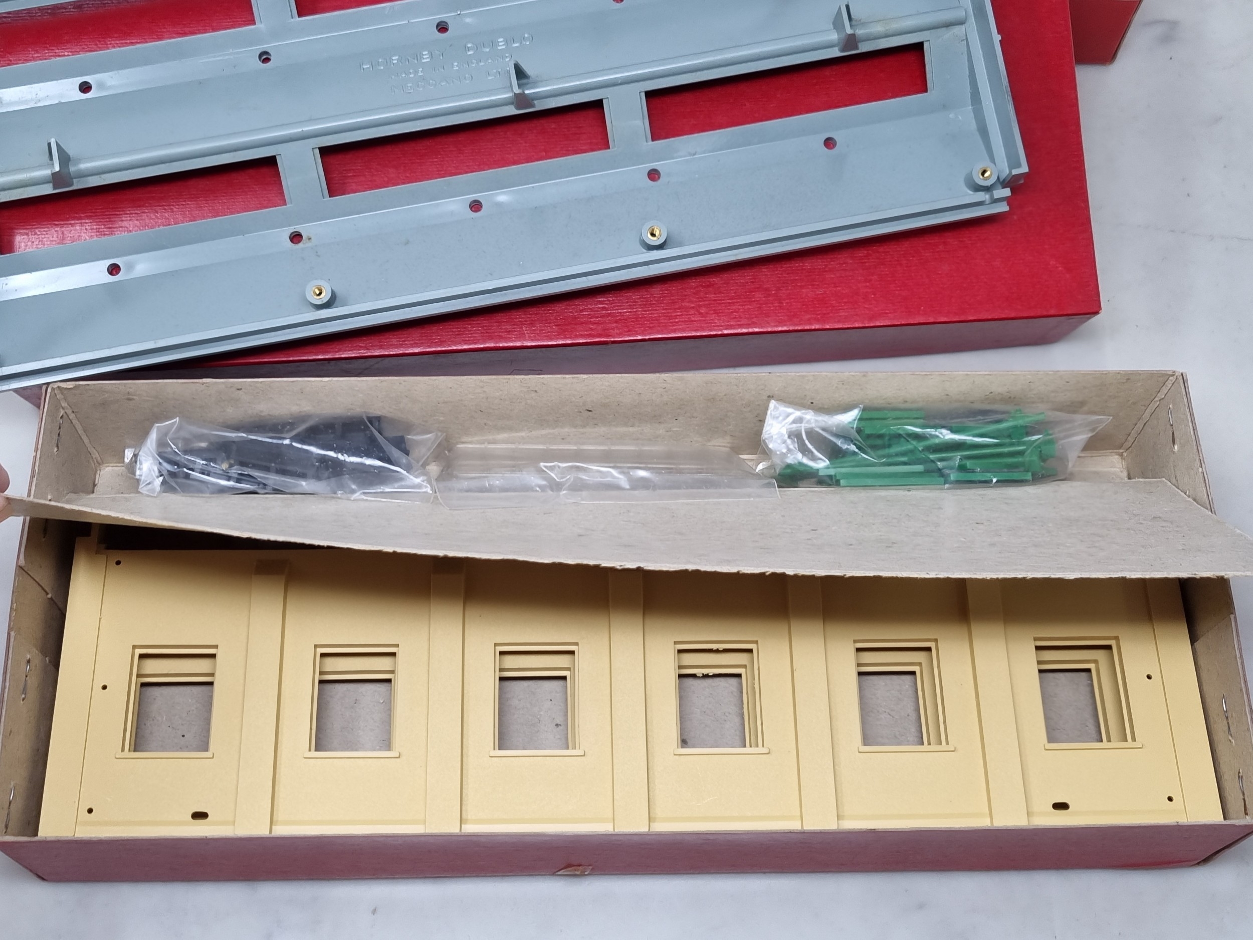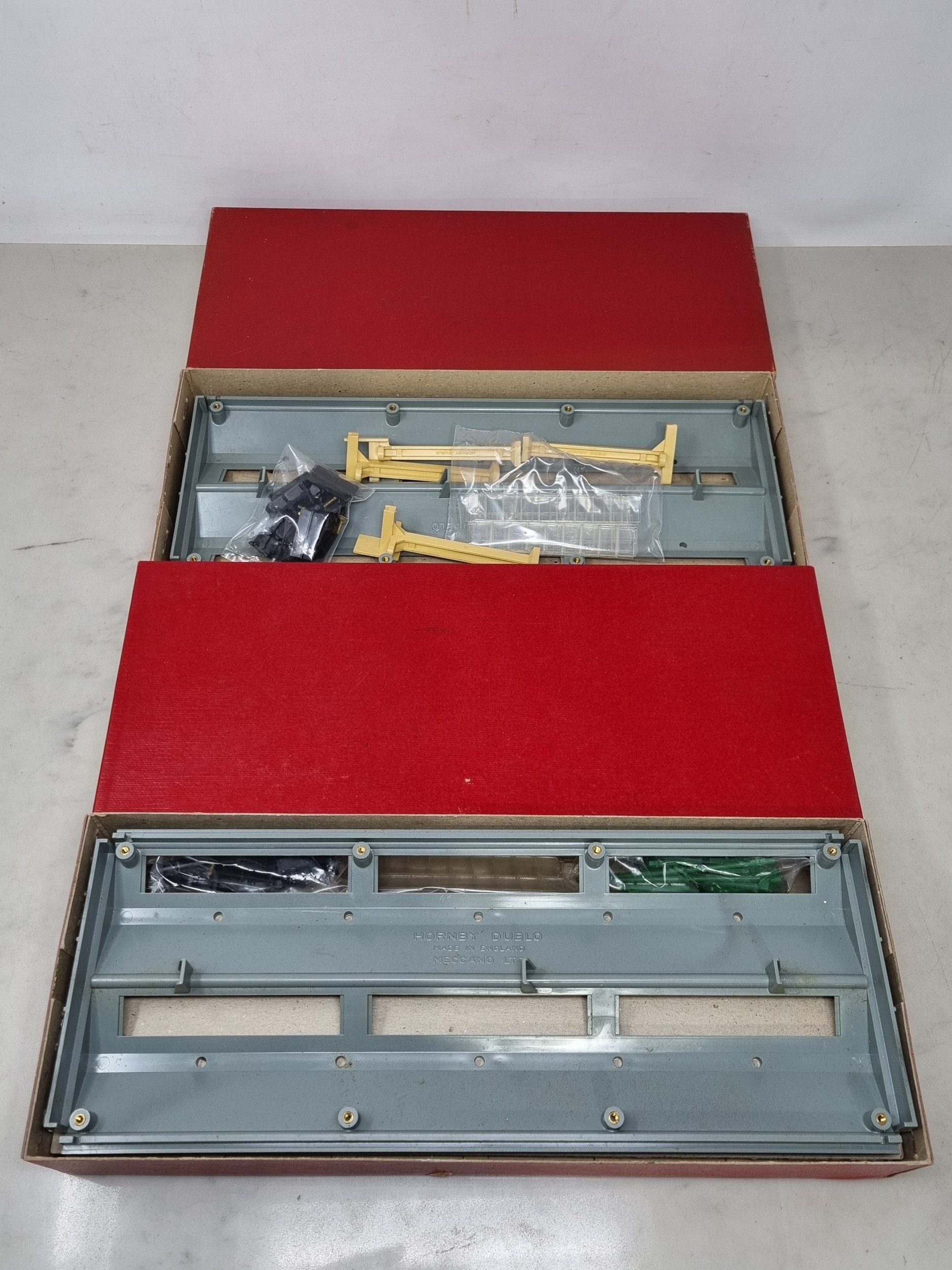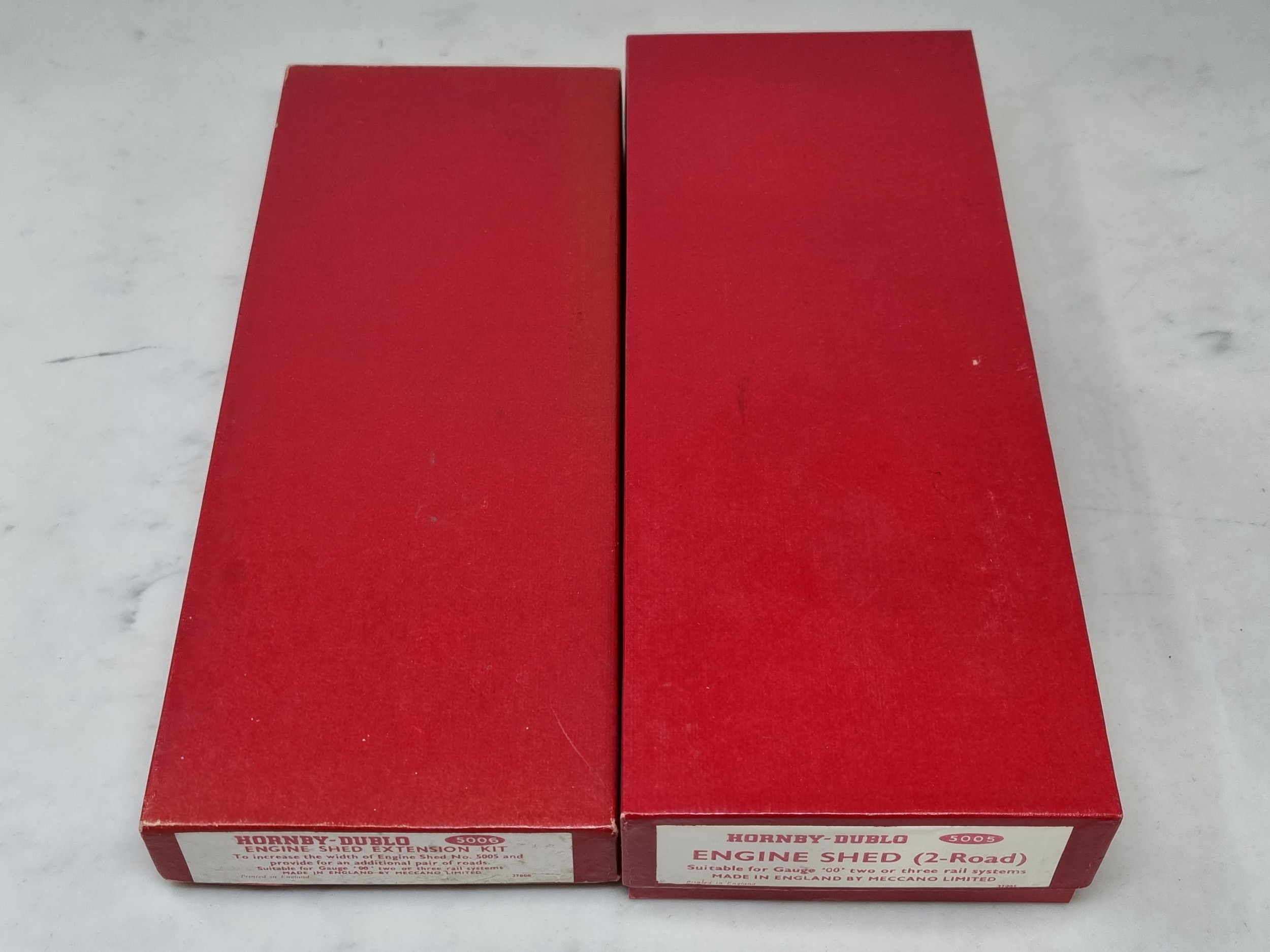 A boxed Hornby Dublo 5005 Engine Shed and 5006 Extension Kit, both contents in sealed packets, boxes superb
