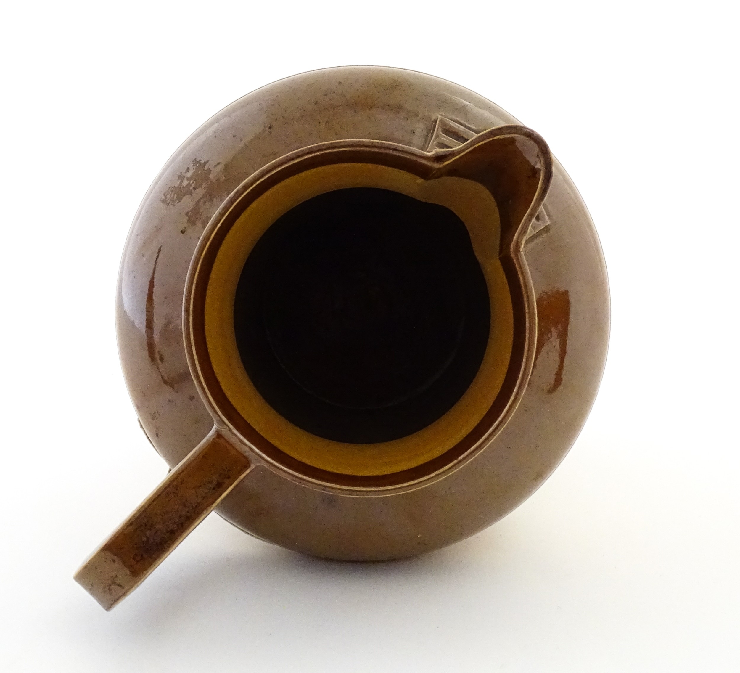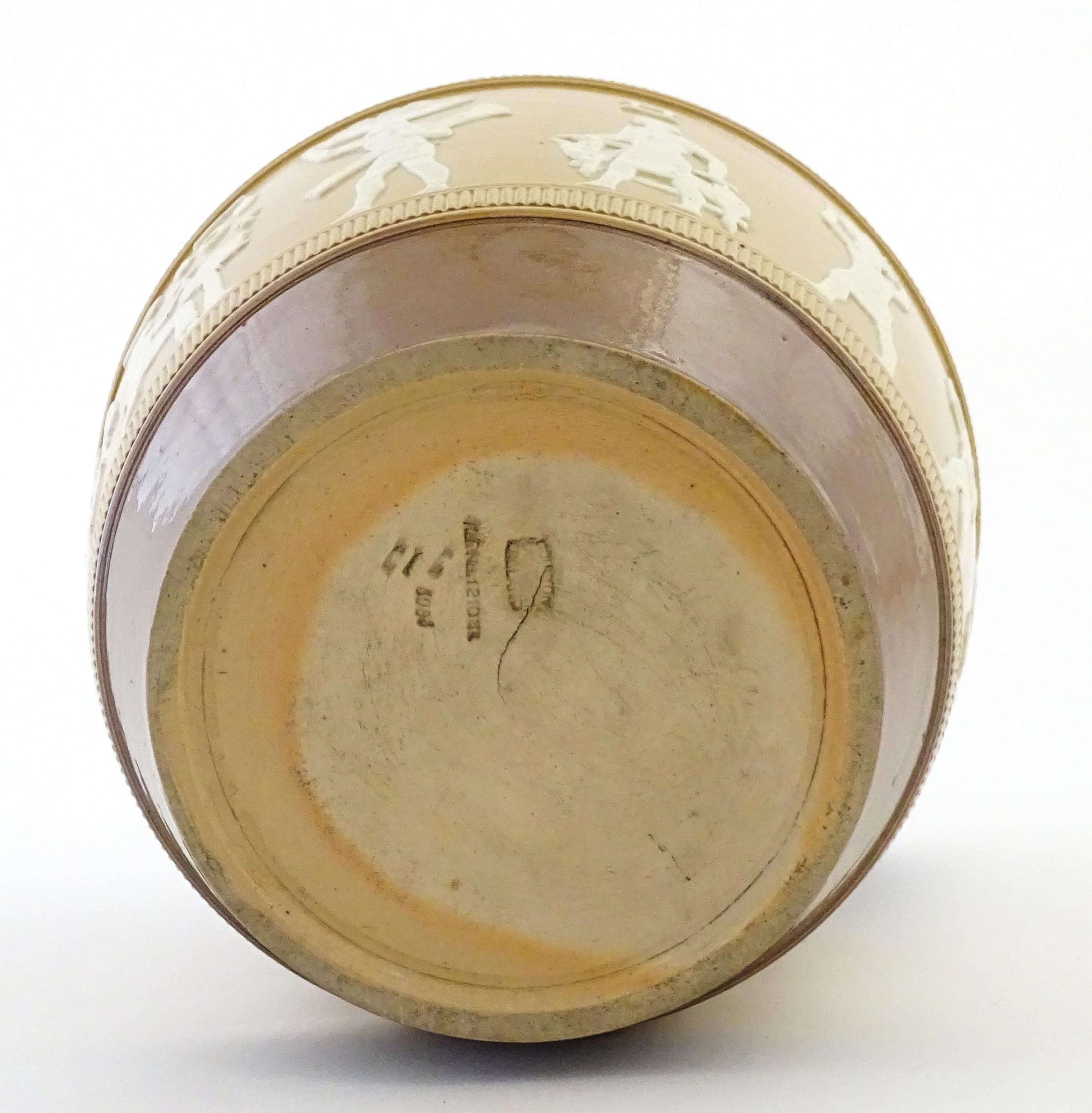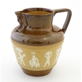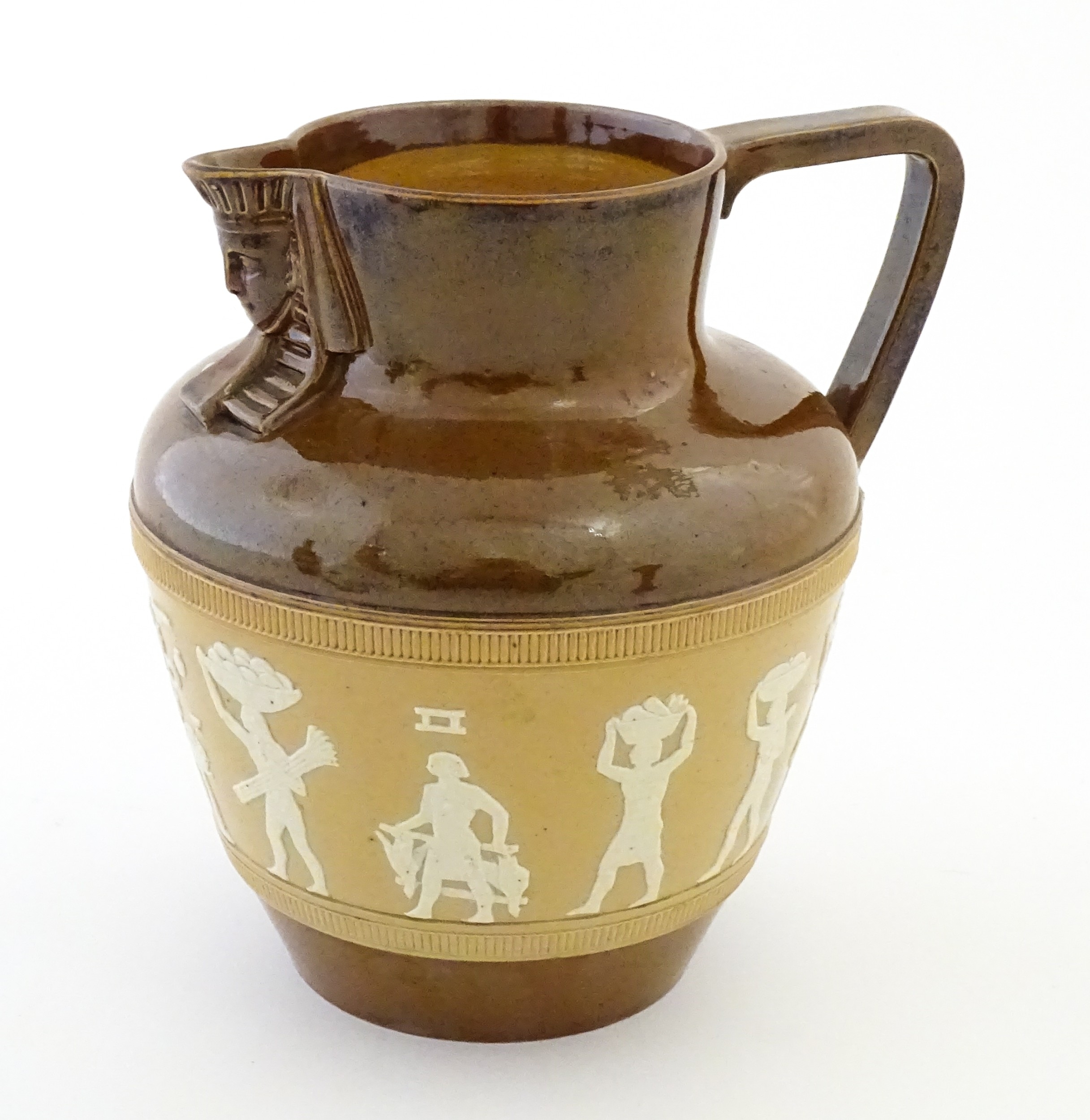 A Doulton Lambeth Egyptian Revival two tone jug. Marked under. Approx. 7 1/4" high