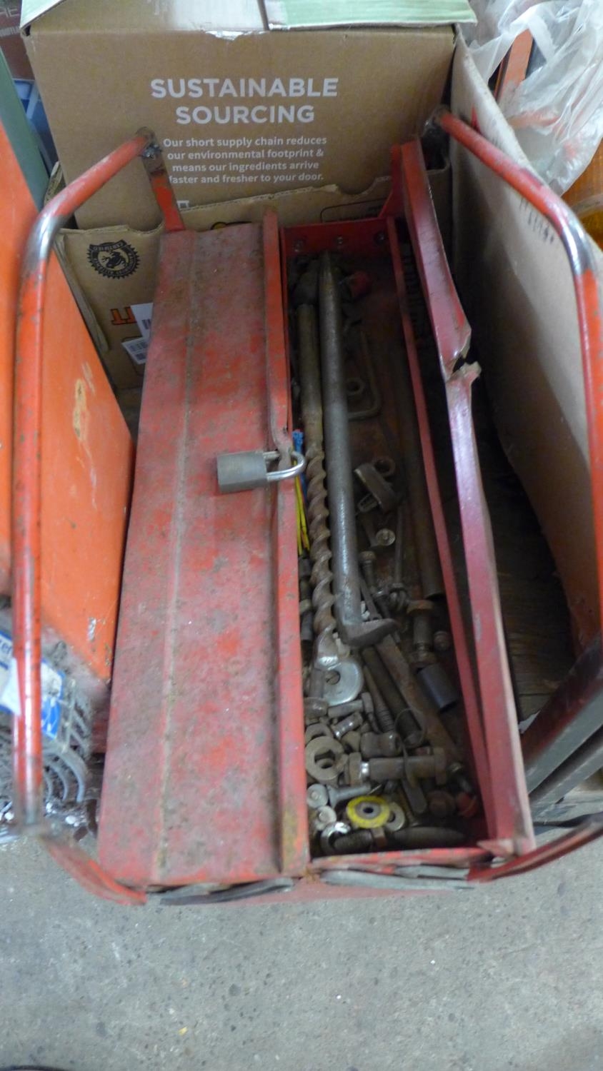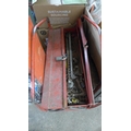 Red metal tool box with qty. of tools