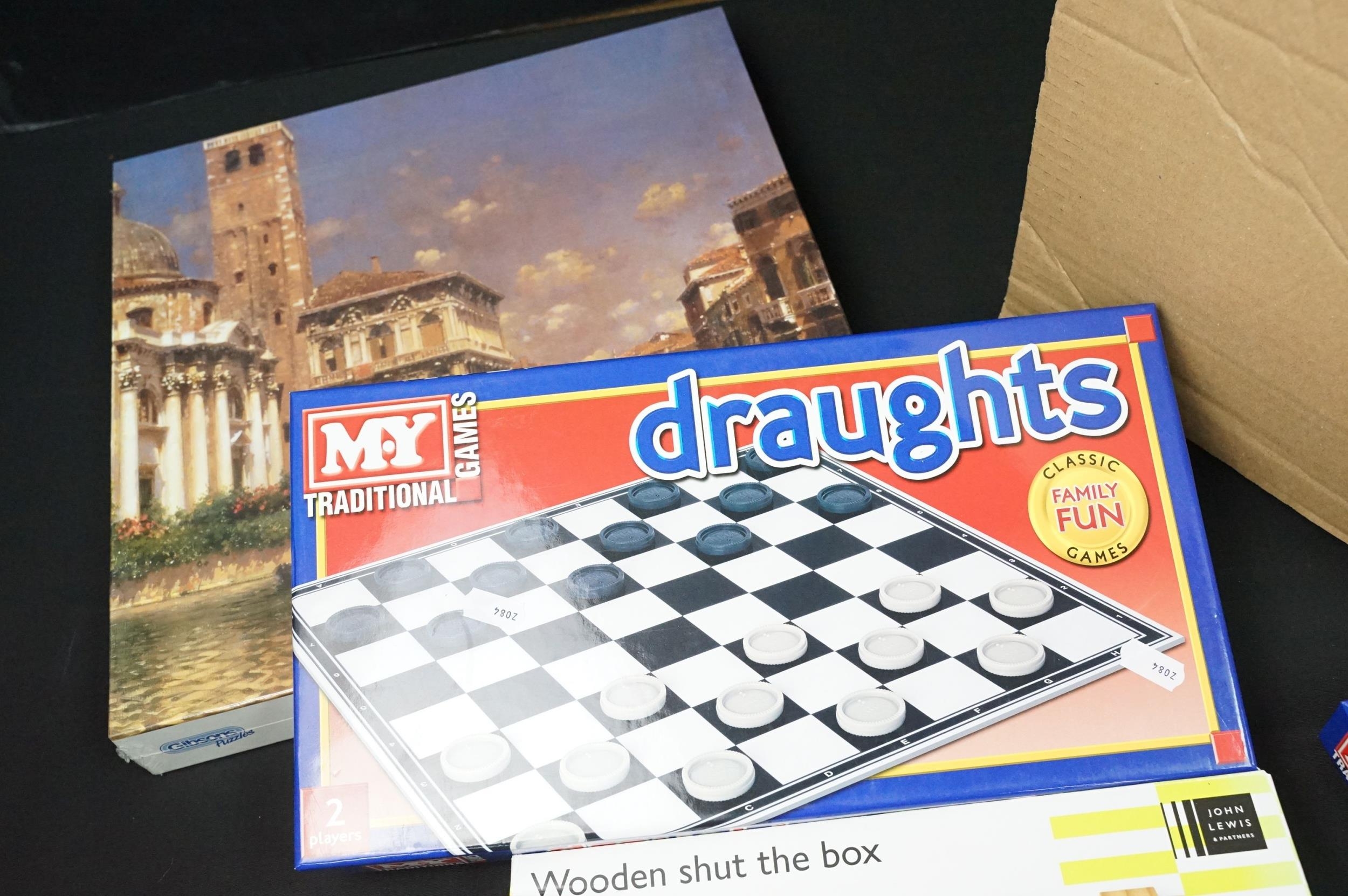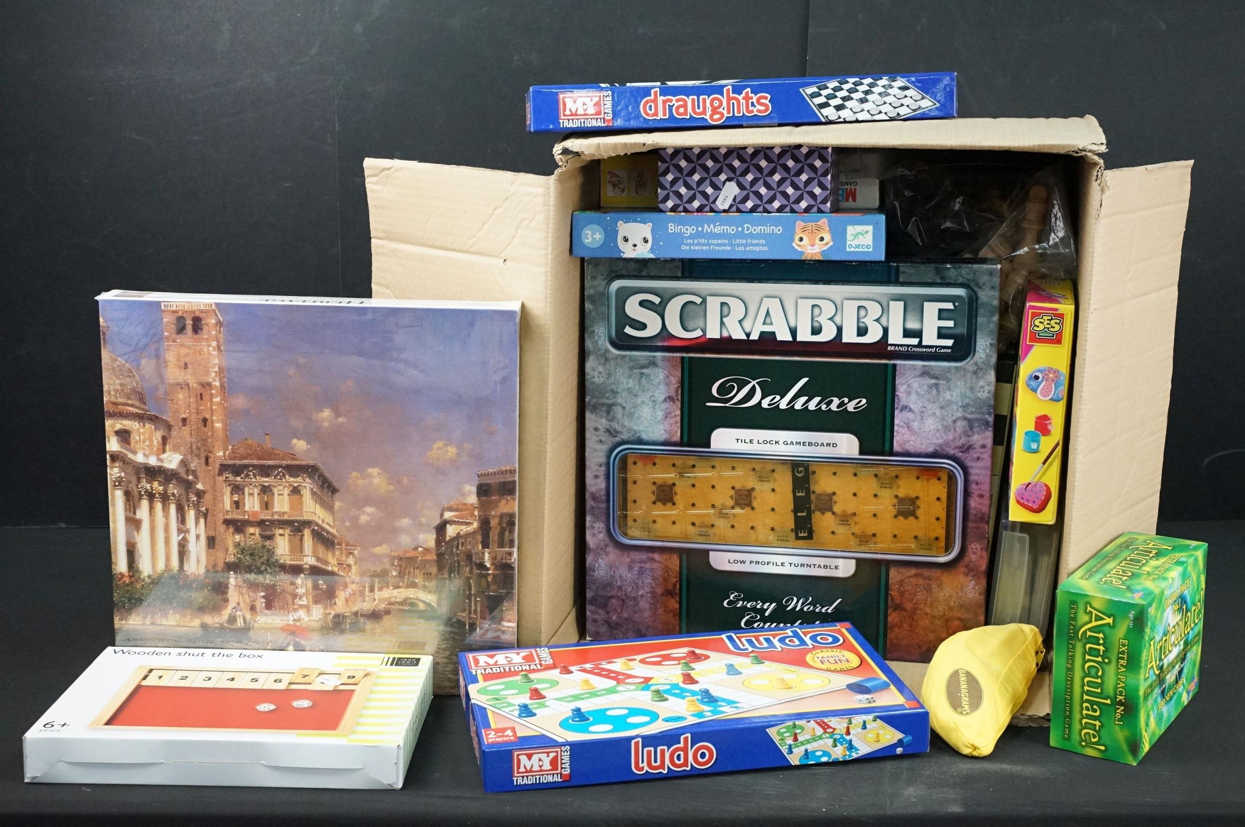 Quantity of mixed board games and puzzles to include Articulate, Draughts, Ludo, Scrabble, Monopoly Junior, Gibsons Puzzles, Guess Who, etc