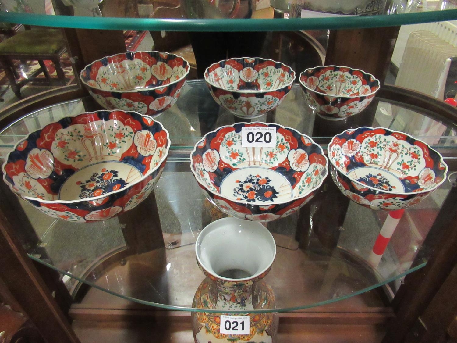 3 Graduated Imari style centre bowls. Biggest - Diameter: 25cm.