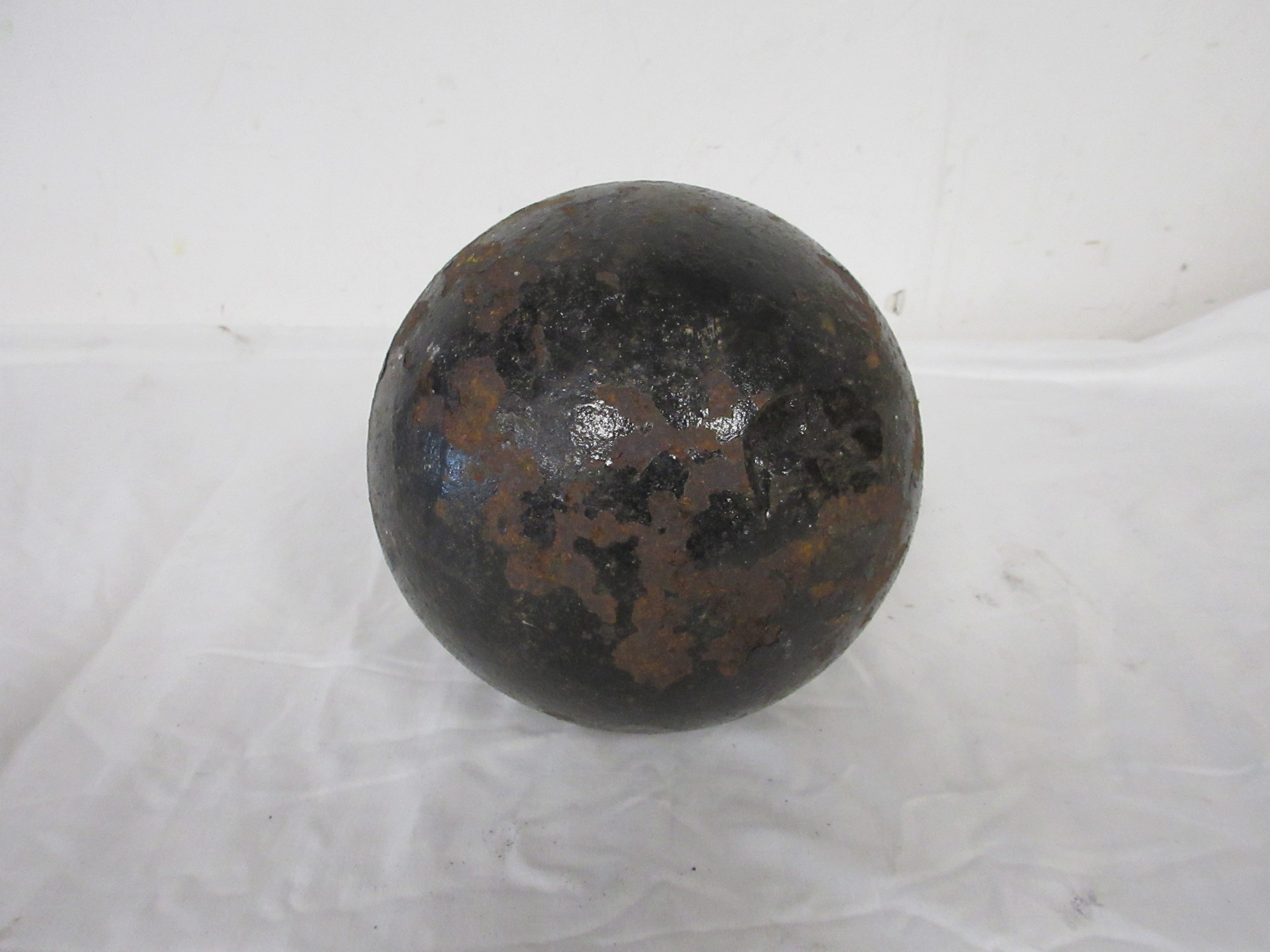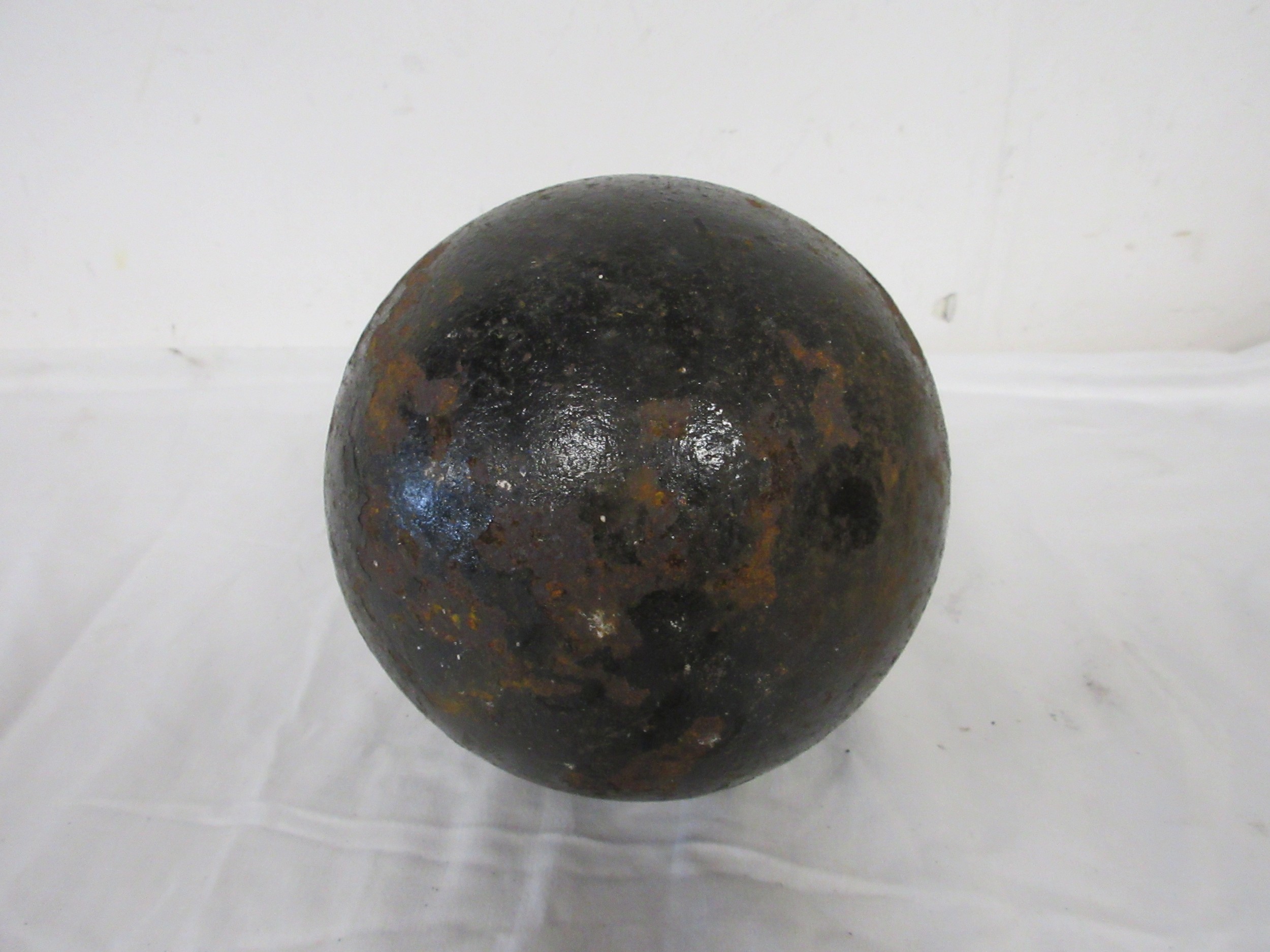 A huge cast iron round shot Cannon Ball weighing approximately 15kgs with an approximate diameter of 16cms.