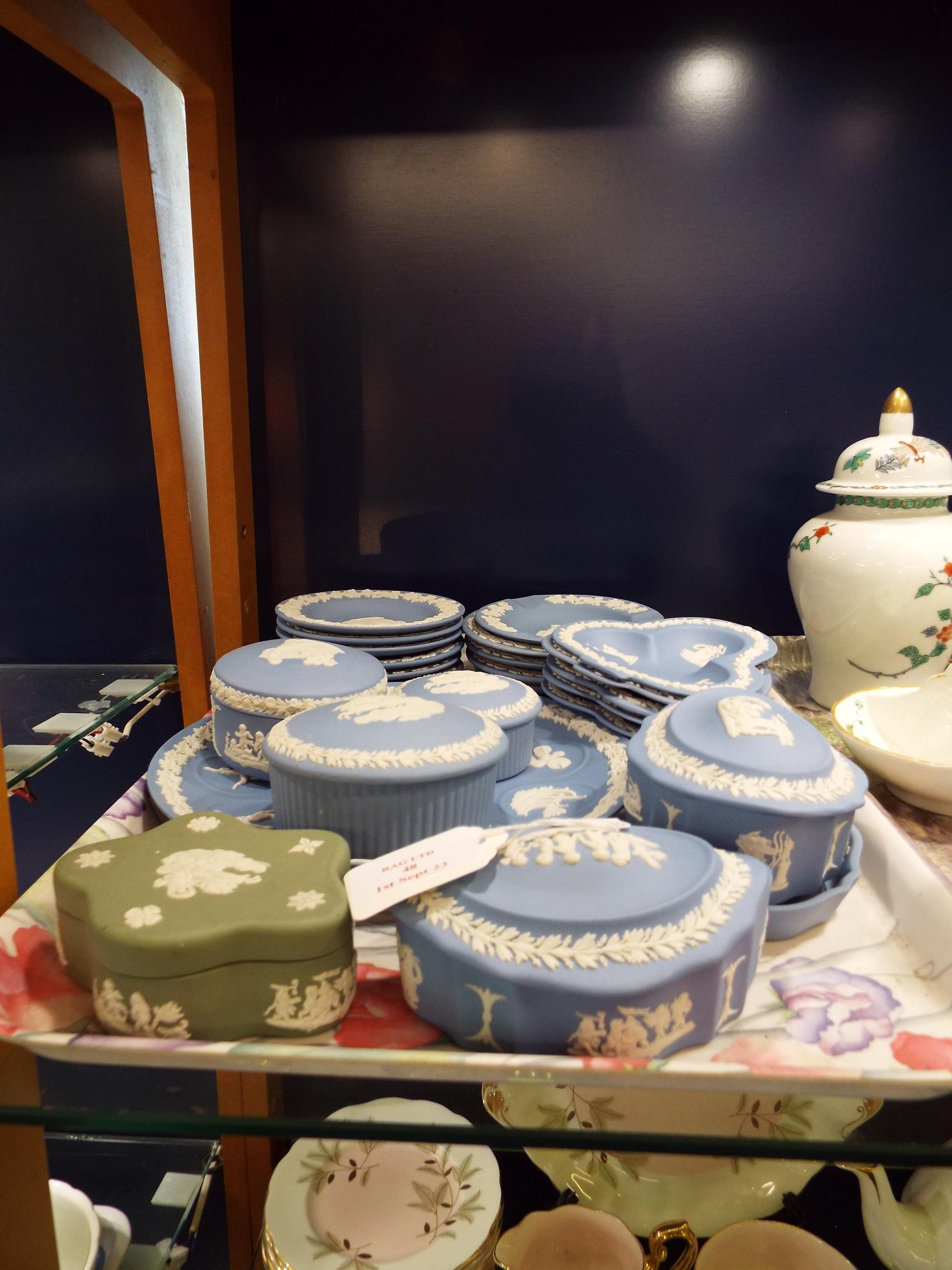 A mixed selection of Wedgwood Jasper ware to include pin dis...