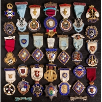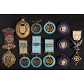 A collection of Masonic jewels: including an Edwardian silver gilt and enamel President's jewel for 'Plymouth District Primo Lodge, 1904', a silver gilt Gloucestershire breast badge, three steward's badges and five silver and enamel lodge badges etc.