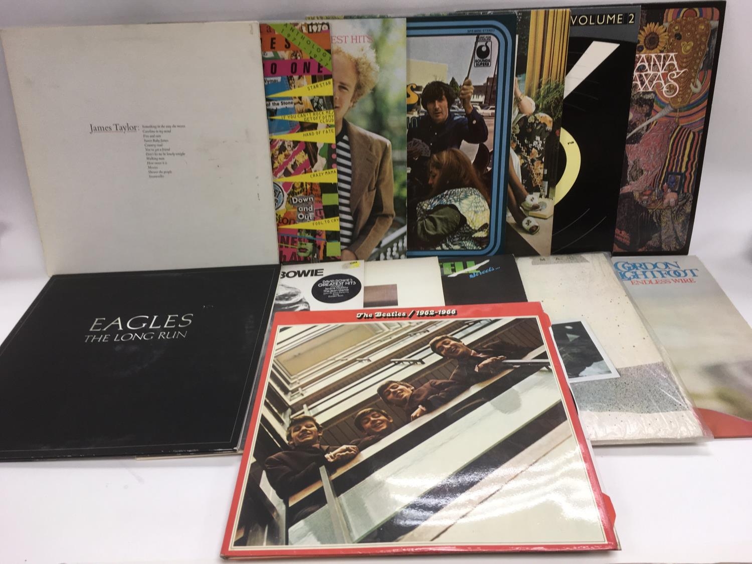 A small collection of LPs by various artists including The Beatles, David Bowie, The Eagles etc.