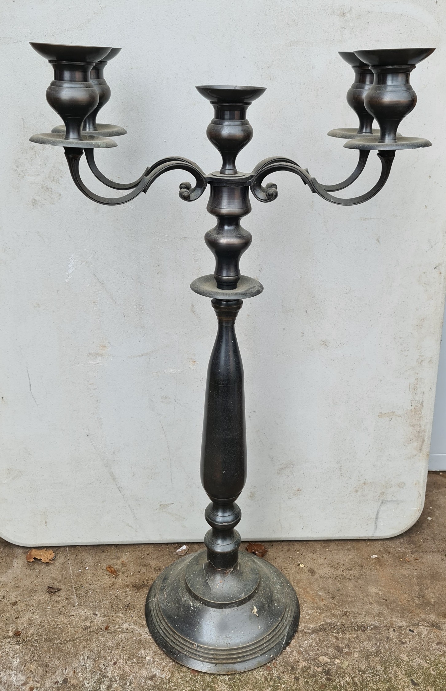 Large Cast Metal 4 Brach Candlestick. Measures 82cm tall. Shipping is available. Please ask for a quote before bidding. Where possible we combine shipping costs. Remember, if you are the highest bidder above reserve on this Lot you have bought the item and are legally responsible for the item. Viewing is recommended in either person or via video link. Contact us to arrange.