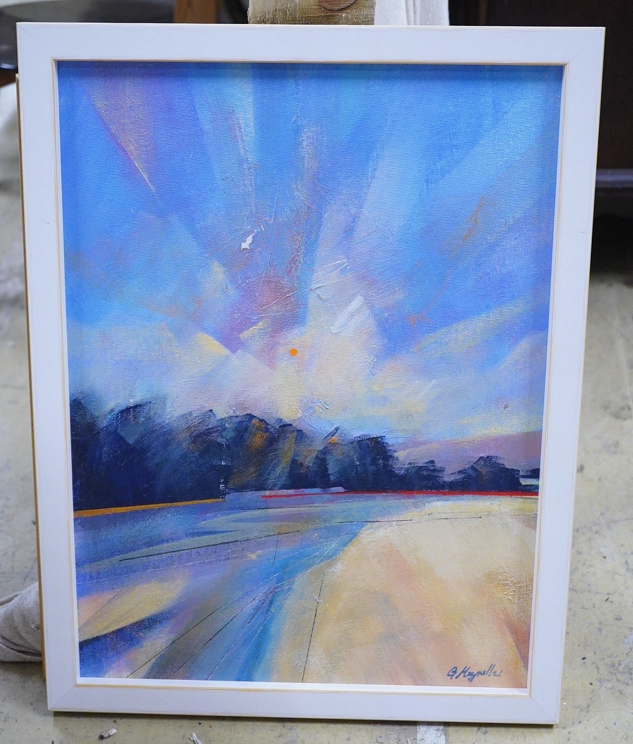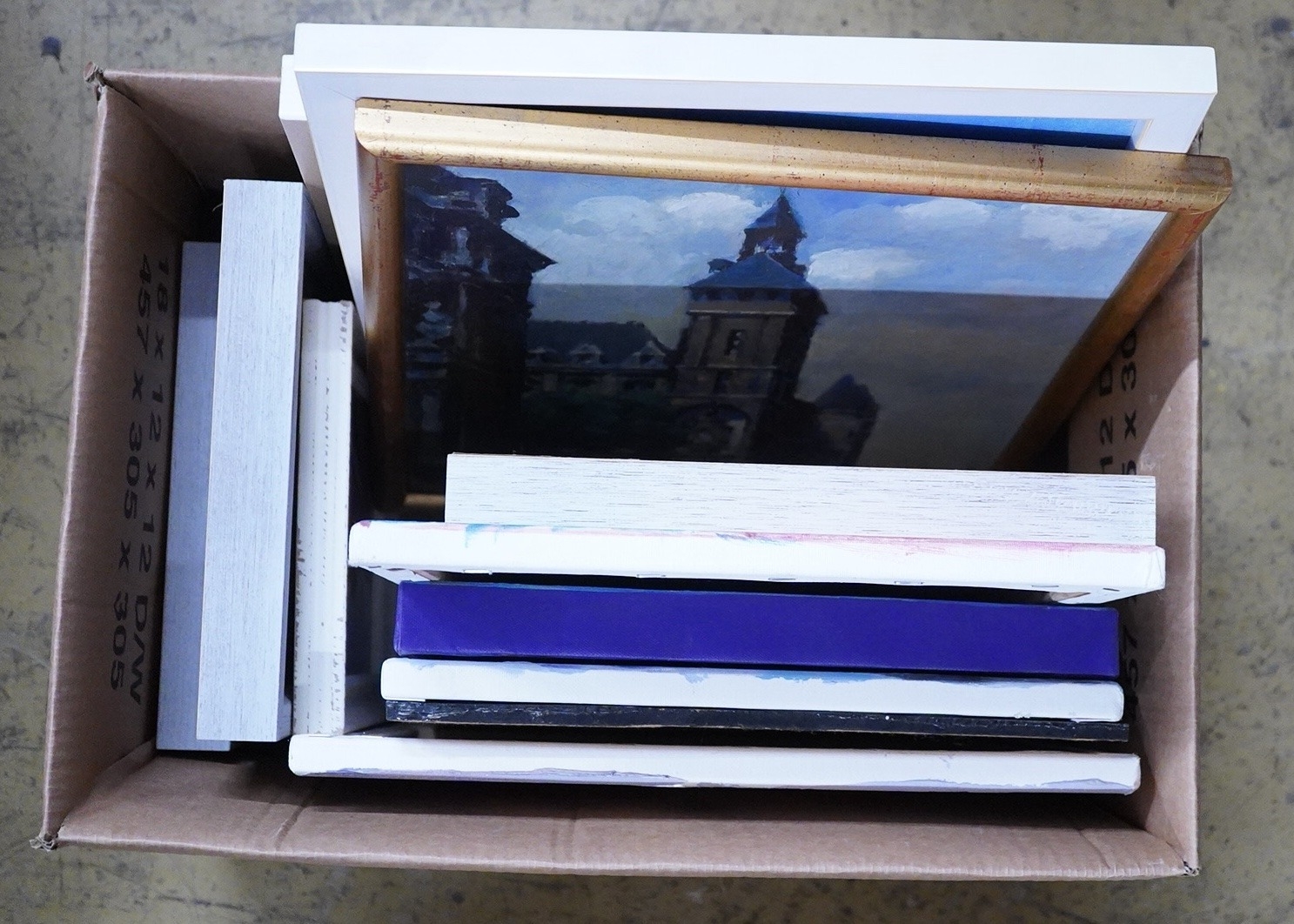 A collection of contemporary oils, mostly abstract compositions, to include one by Fergus Robert McLachlan, 'Tuscan Interior' and one by Irina Alexandrina, 'City Lights', some framed (12)