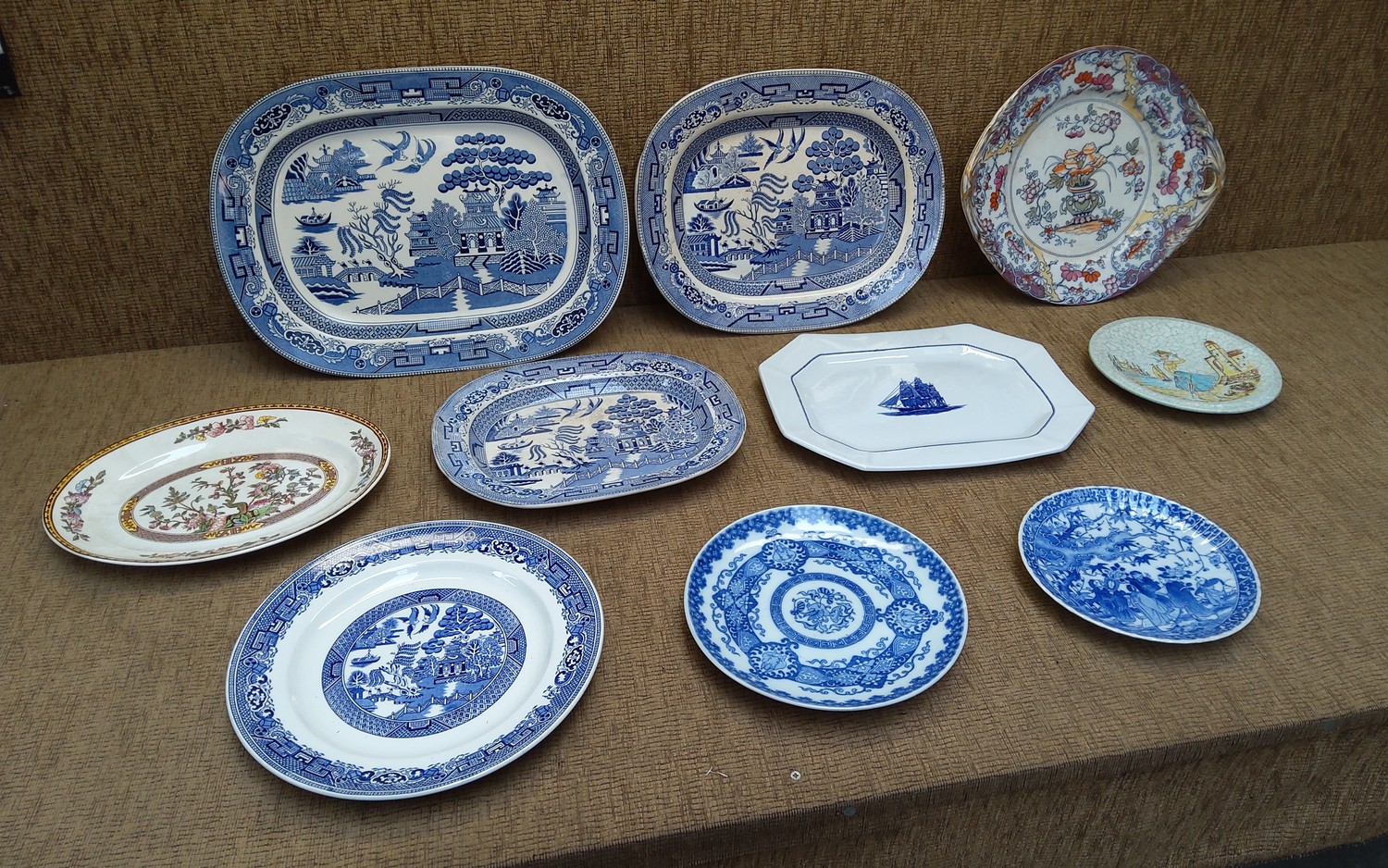 Ceramic Serving and meat plates including Wedgewood Flying cloud 1851.