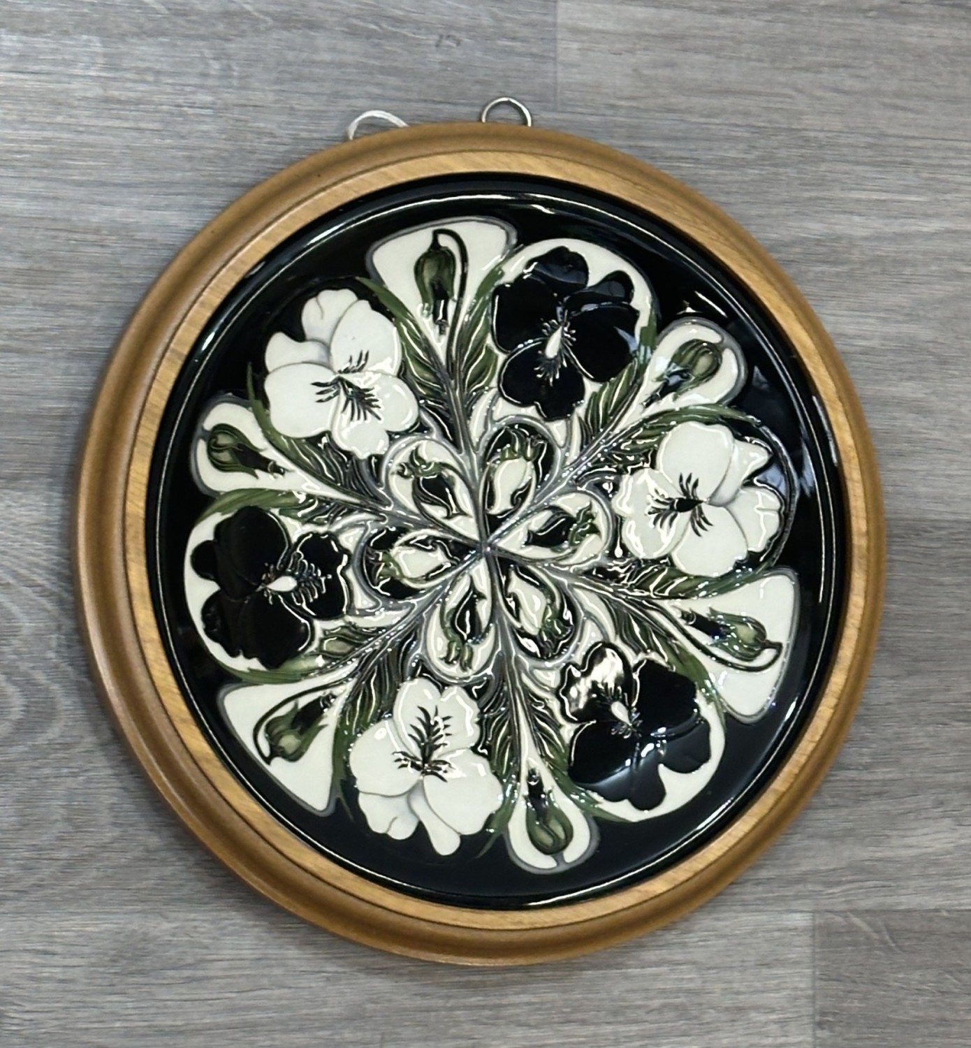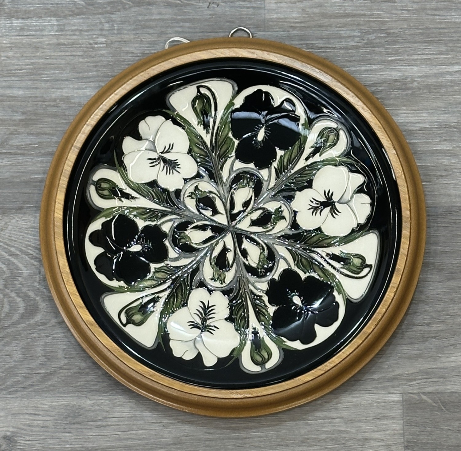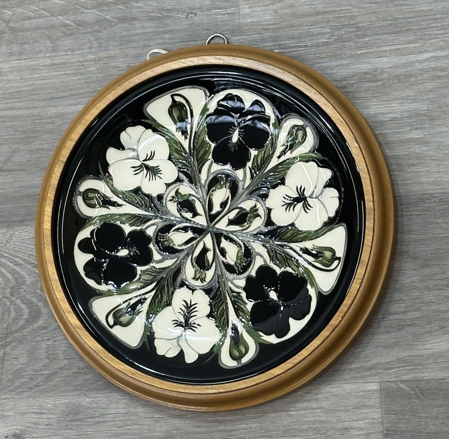 A framed Moorcroft Harlequinade circular wall plate - approx. 30cm diameter
