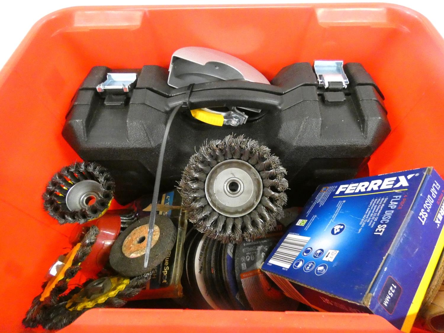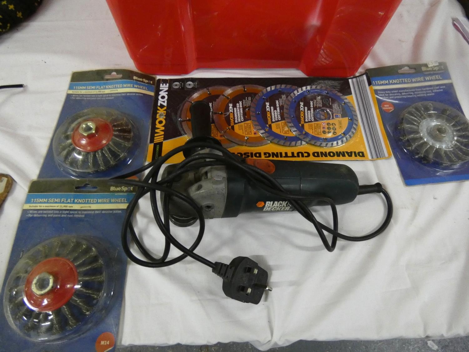 Two electric winch grinders and wheels and wire brushes.