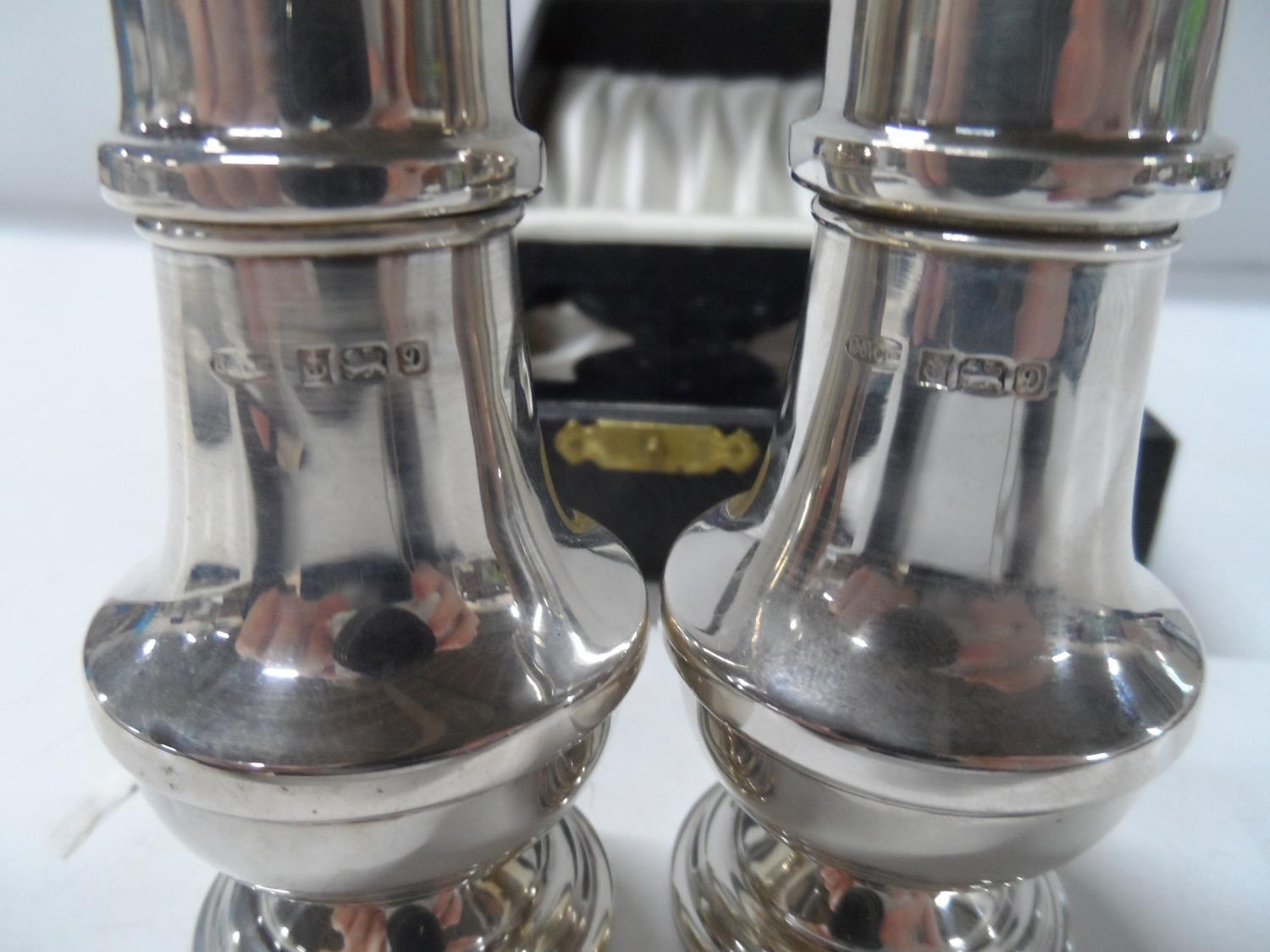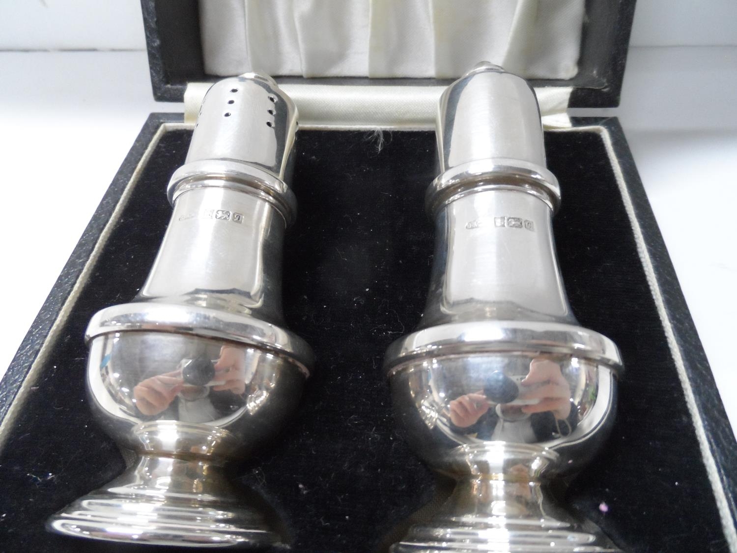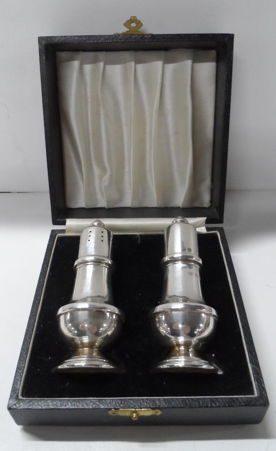 Cased pair of Birmingham silver salt cellars,66 grams