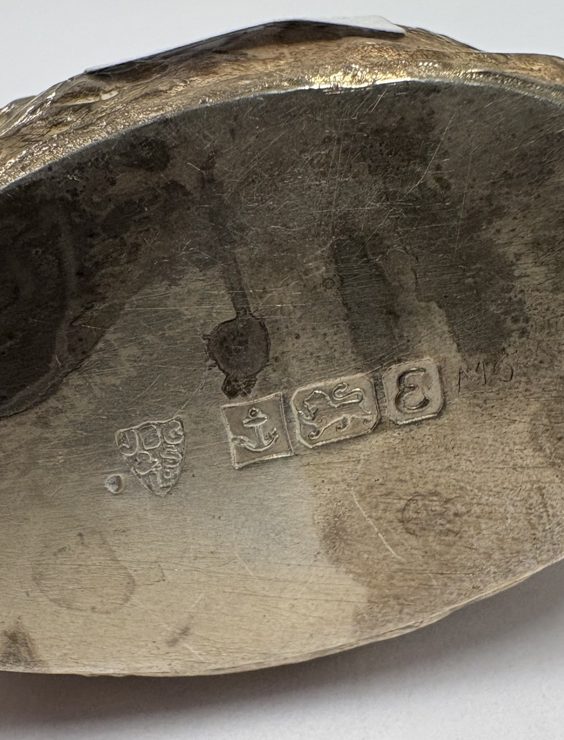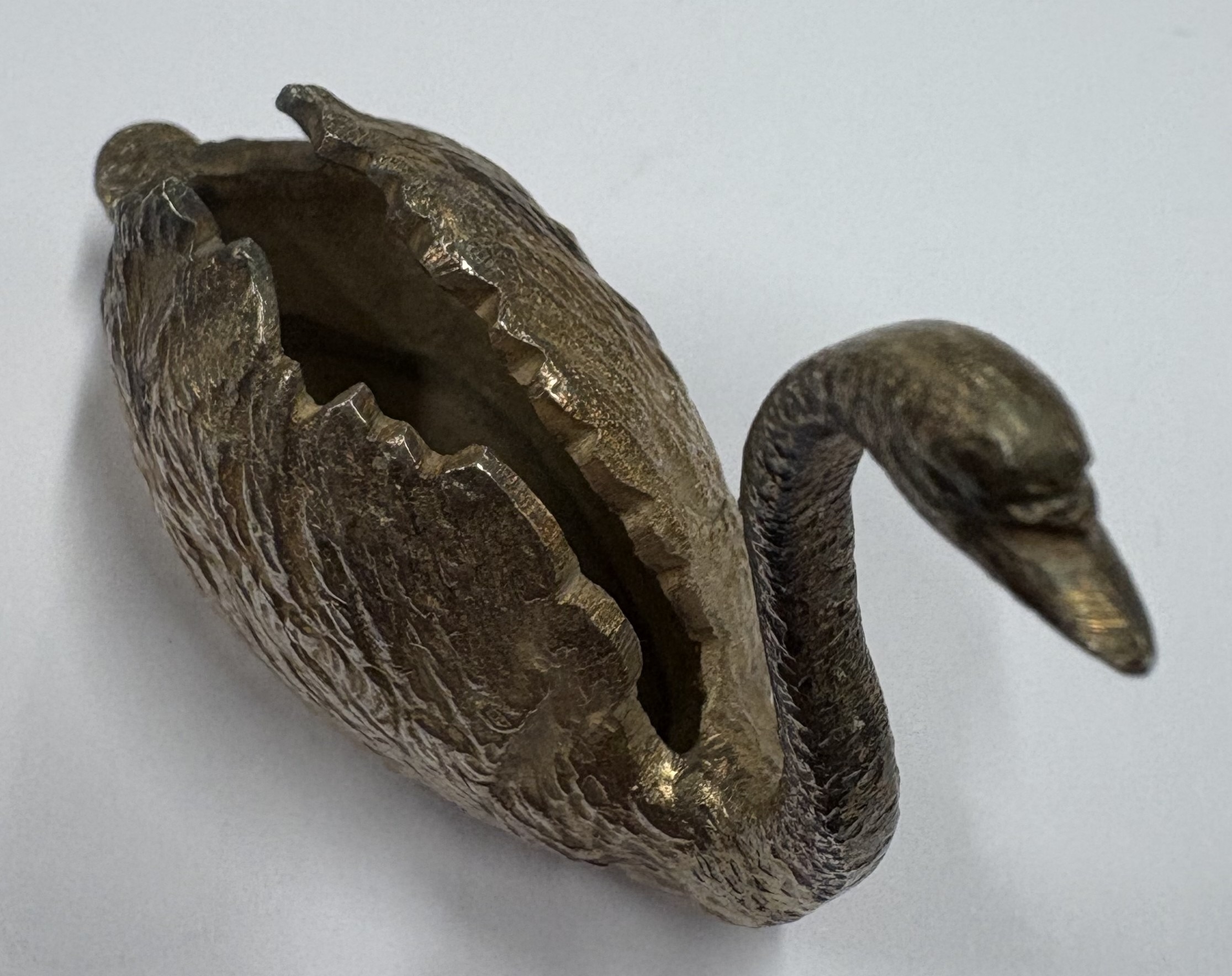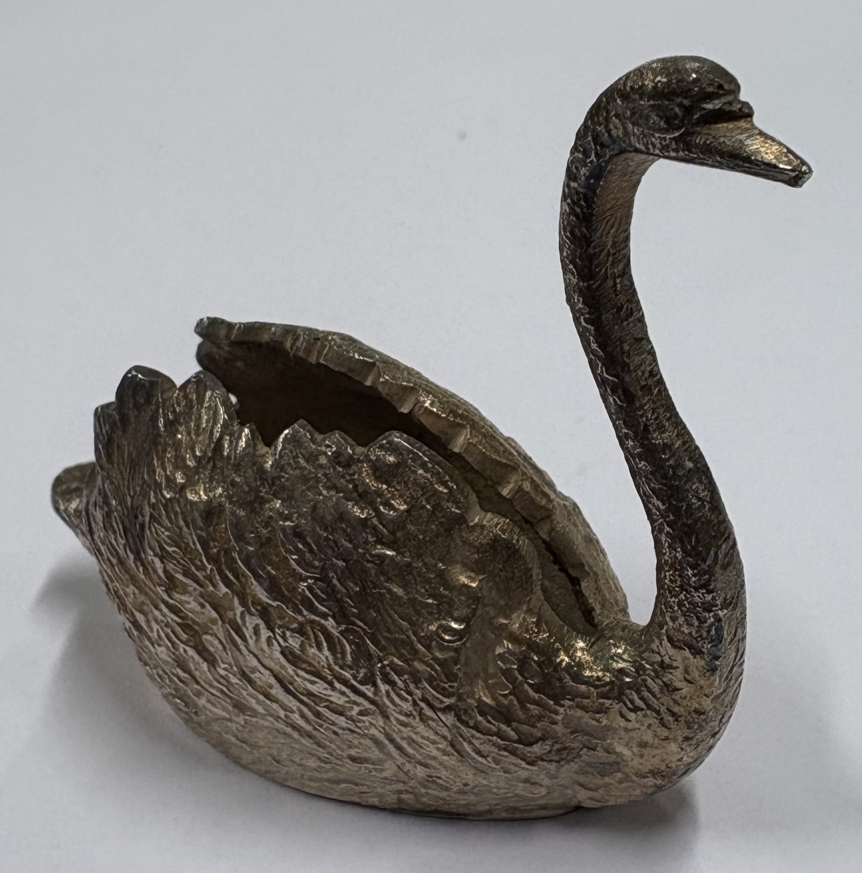 A heavy cast silver figure of a swan with textured body. Birmingham. Approx. 57 grams. Est. £60 - £80.