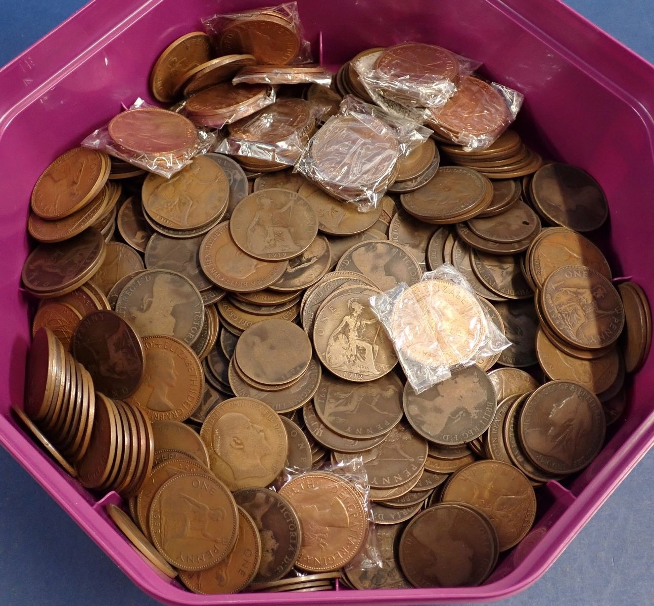 A group of copper / bronze coins mainly pennies, Victoria - Elizabeth II, Heaton and Kings Norton issues, approx 3.2kg Cond: Poor - EF