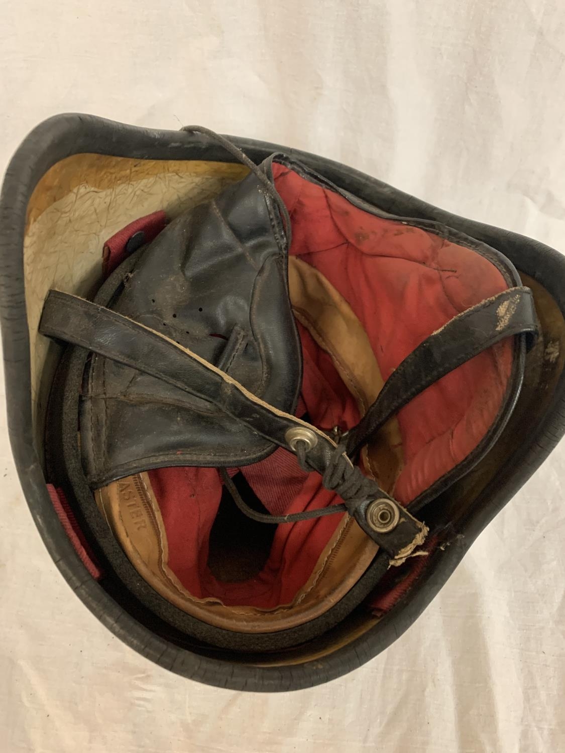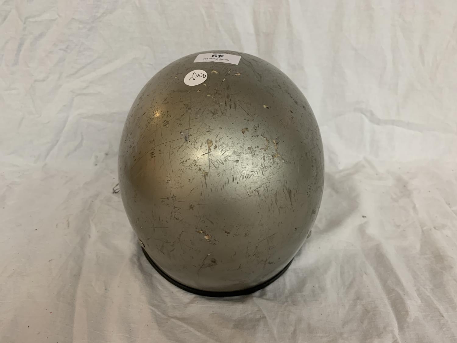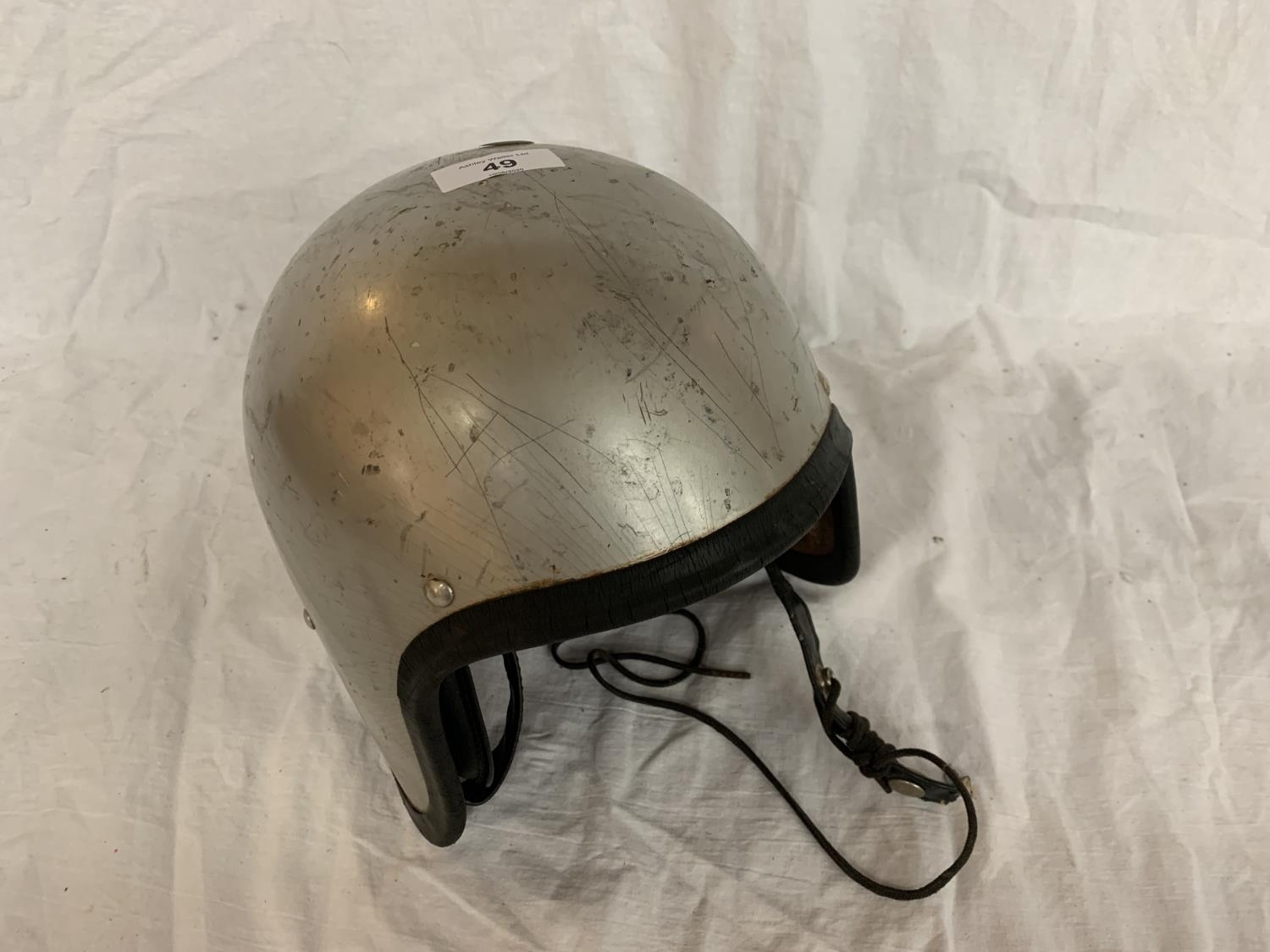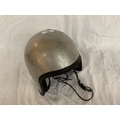 A VINTAGE SILVER COLOURED CRASH HAT