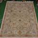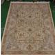 Tripod Bamboo Plant Stand with brass caps & Windham Polypropylene Rug, beige ground with sage green/cream/rust floral decoration & white fringed ends (2)