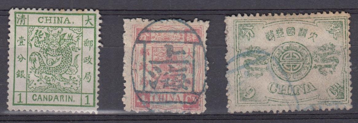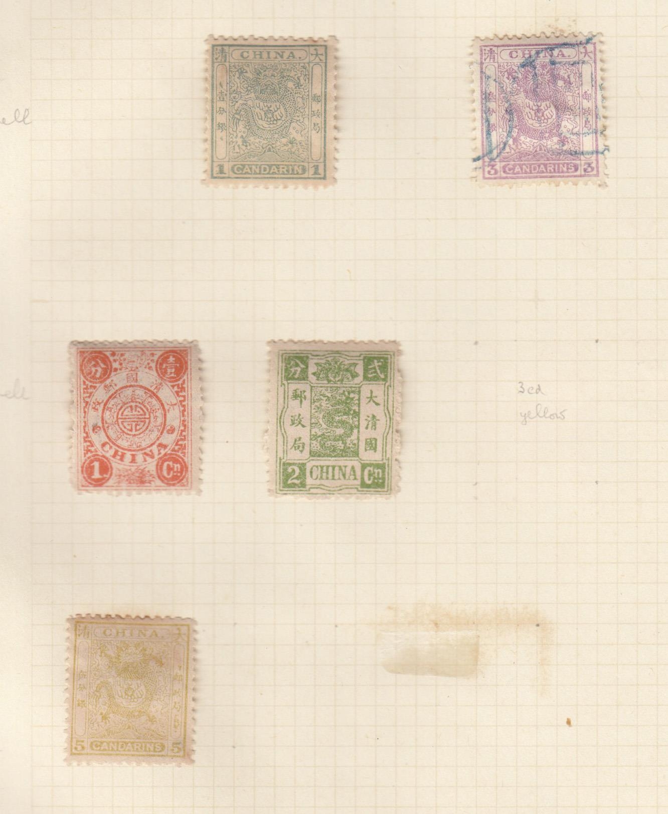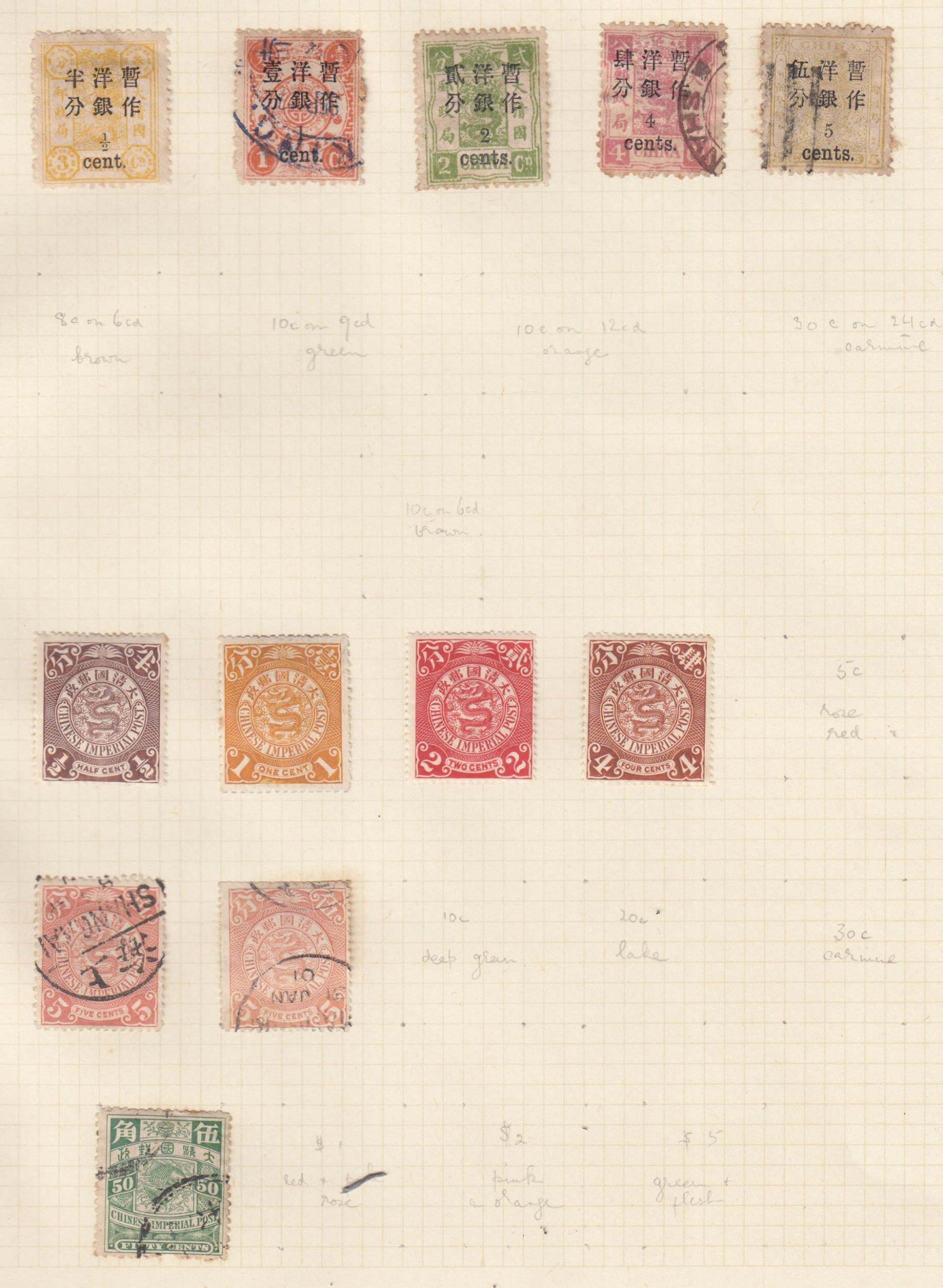 1878/97 small range on 2 pages with 1878 ‘Large Dragon’ 1ca green unused with ‘Small Dragon’ 1ca mint and 3ca used, 1894 1ca and 2ca mint, 4ca and 9ca used, 1897 surch 1c to 5c used etc.