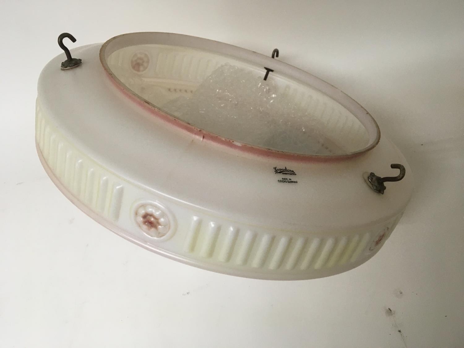 A Vintage opaque glass hanging shade maker Sunastone Slovakia. diameter 40cm