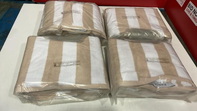 X4 NEW BIANCA PURE QUALITY REVERSIBLE STRIPE JACQUARD BATH SHEET / VIEW, BID AND BUY IN THE ROOM, THEN TAKE AWAY THE SAME DAY / VIEWING FROM 8AM ON THE DAY OF THE SALE / PLEASE NOTE: ANY PURCHASES LEFT AFTER 5 WORKING DAYS ME BE RE-SOLD TO COVER STORAGE & ADMIN