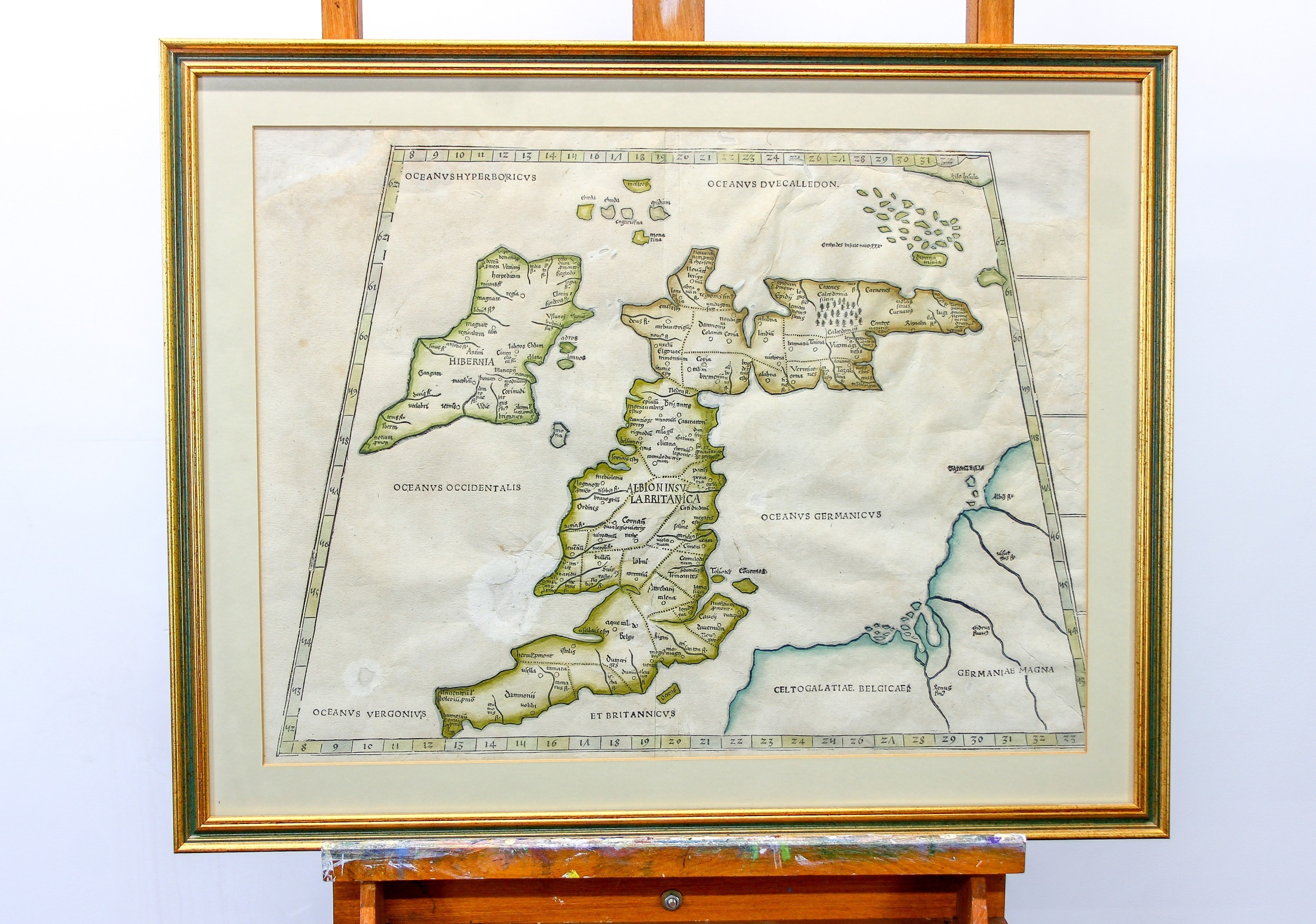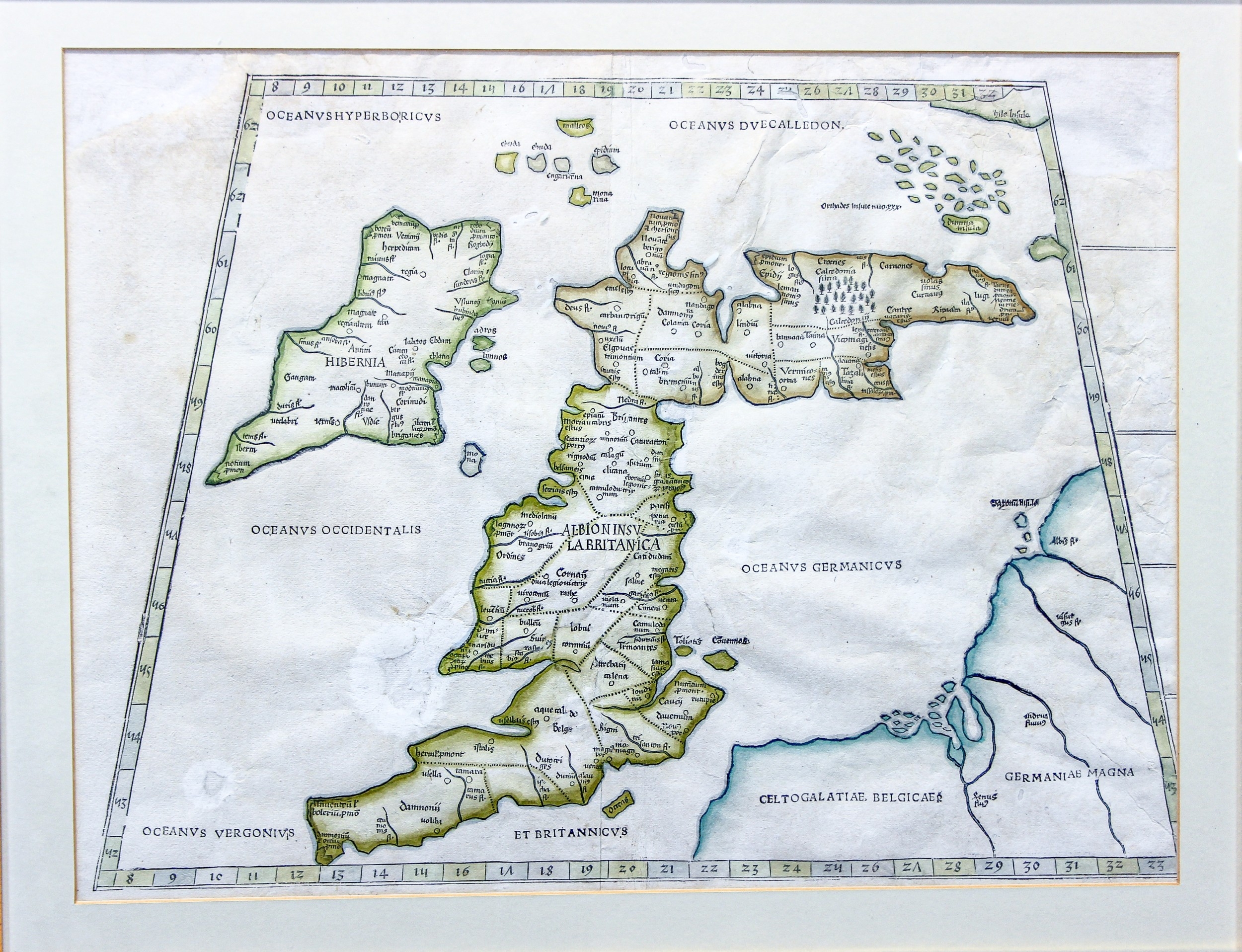Untitled map of the British Isles, published Strasbourg, circa 1520, Ptolemaic woodblock map with hand colouring on a trapezoidal projection with Scotland orientated to the east.