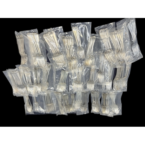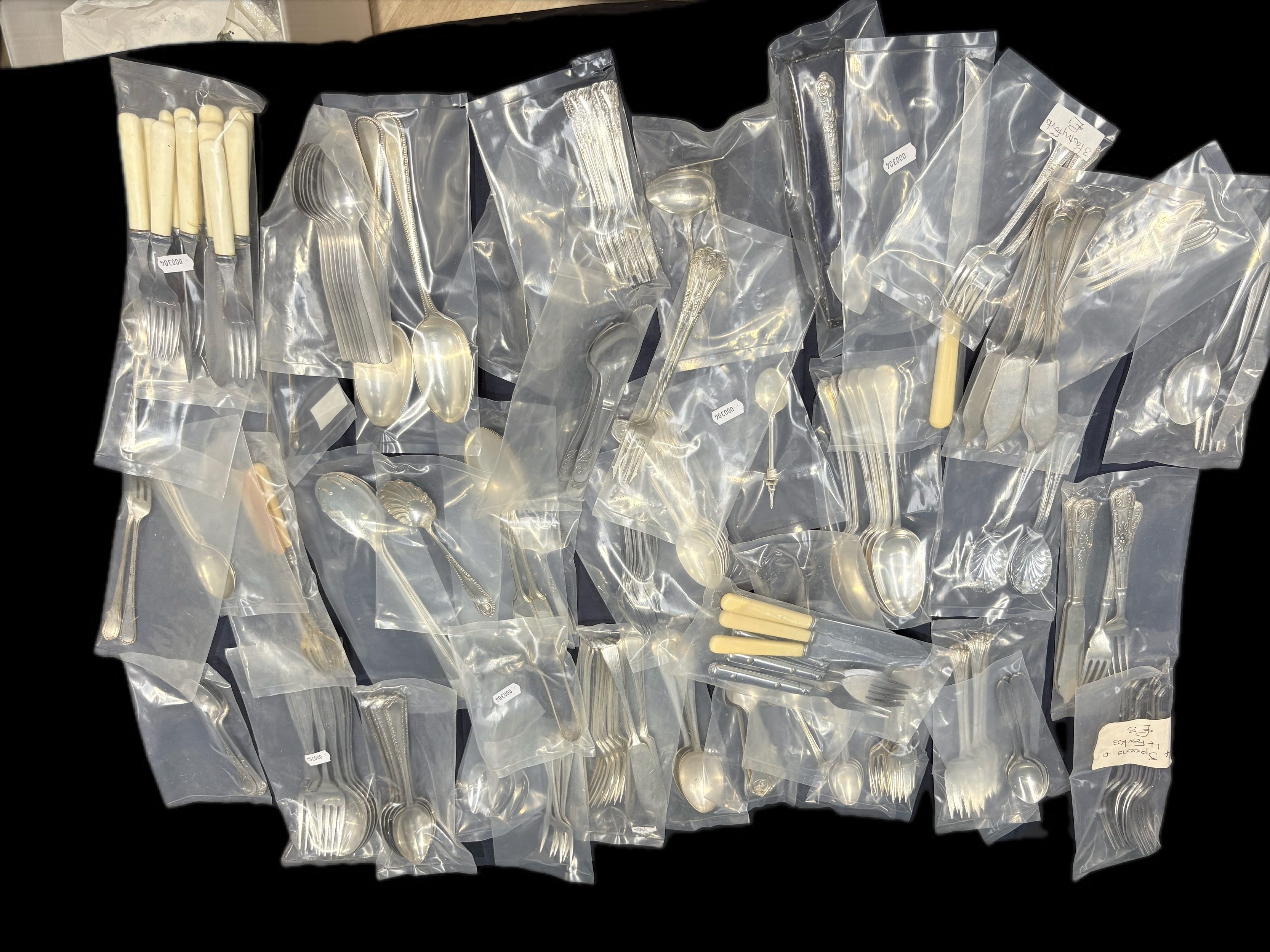 Lrg qty of silver plated pastry forks tongs etc