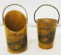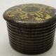 Tunbridge Ware Circular Screw Top Pot with geometric pattern, reeded body, approx. 1 1/4 dia."