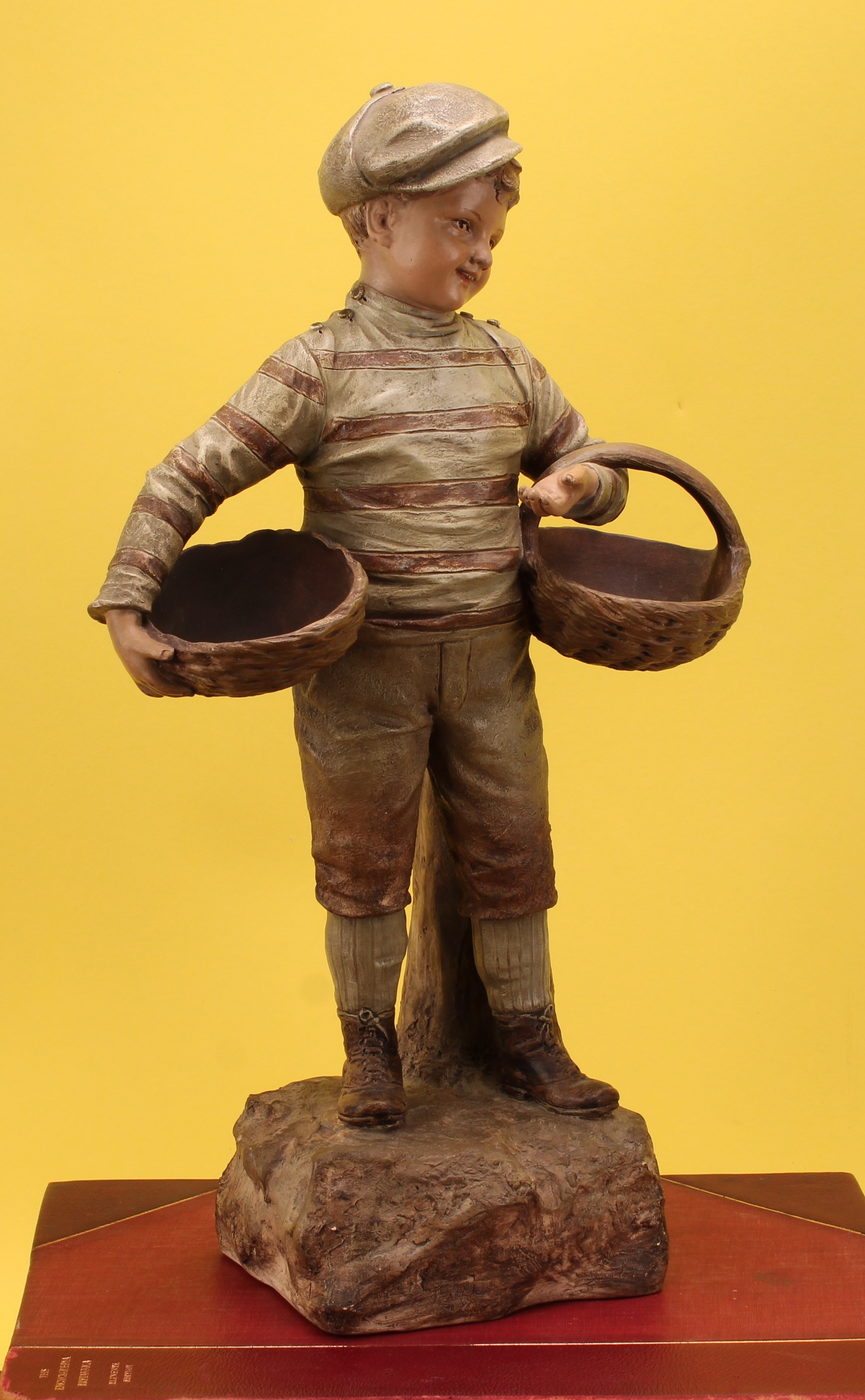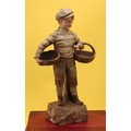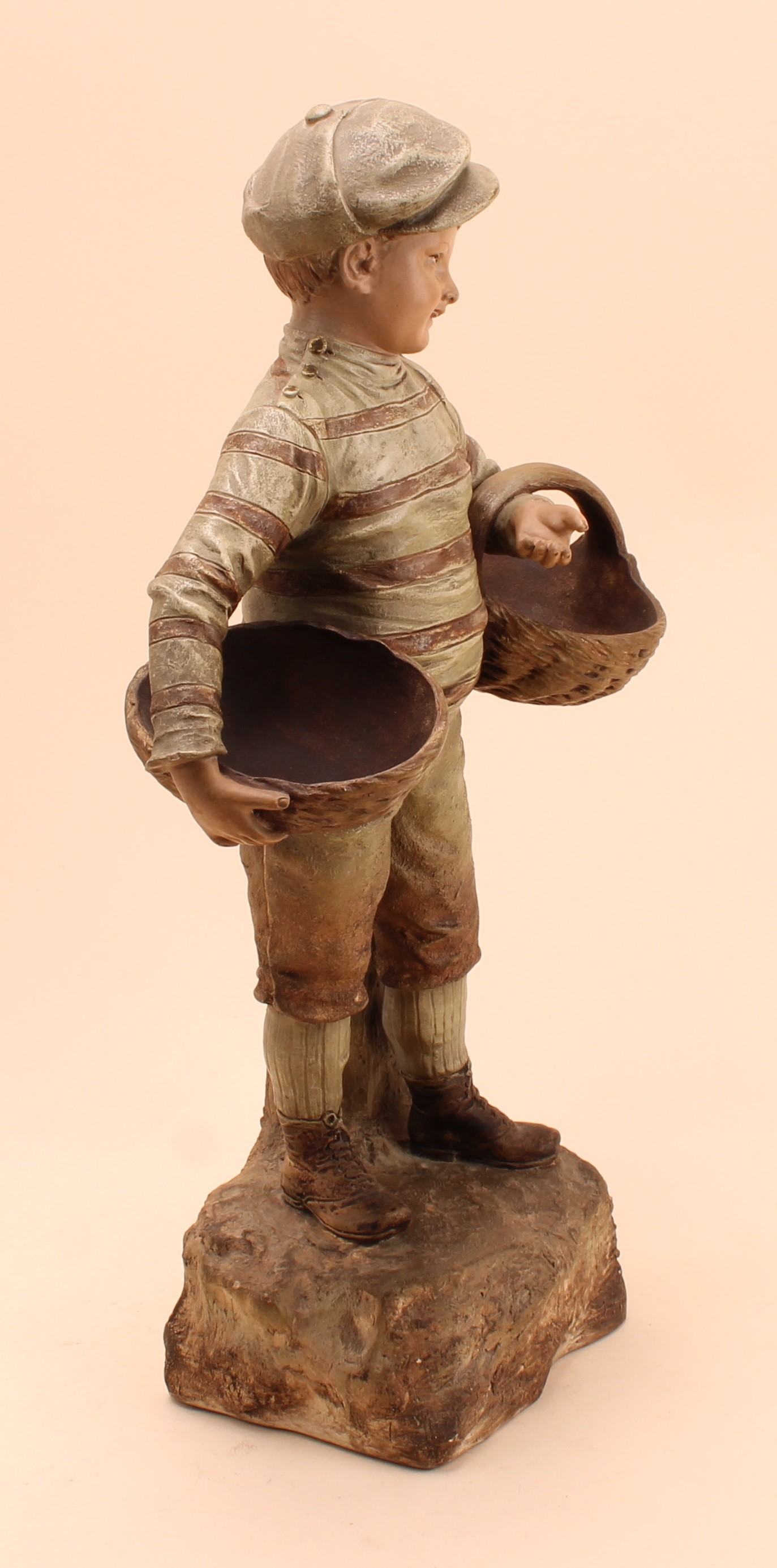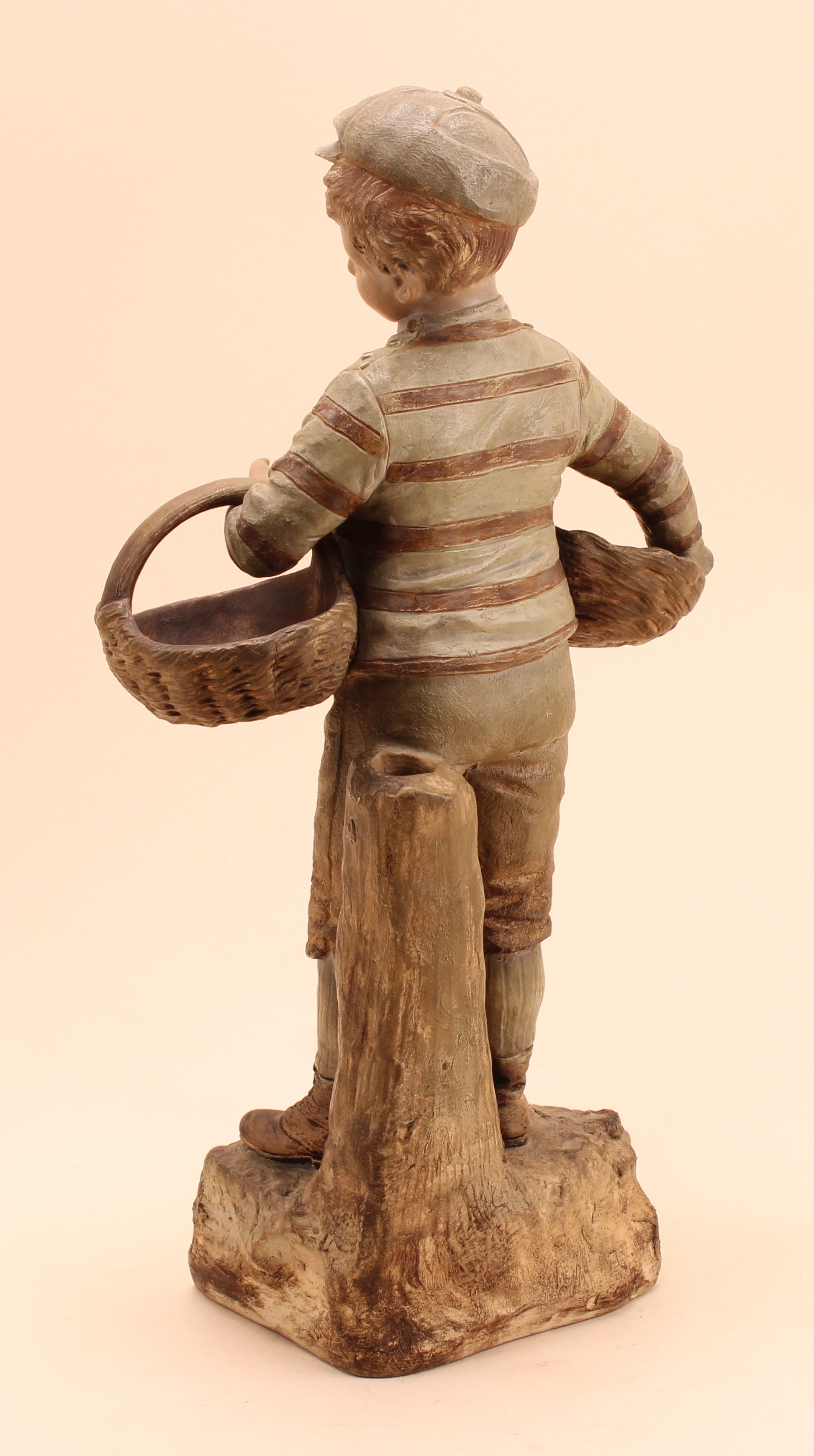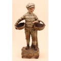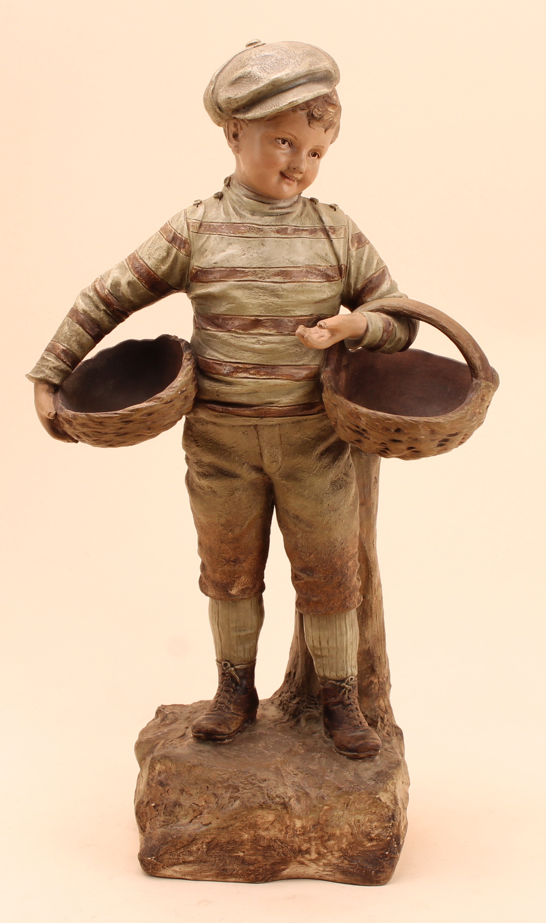 An Austrian terracotta figure by Johann Maresch (1821 - 1914), The Basket Boy, number 6117, designed by August Otto (1868 - 1947), 42cm, impressed marks, c.1900
