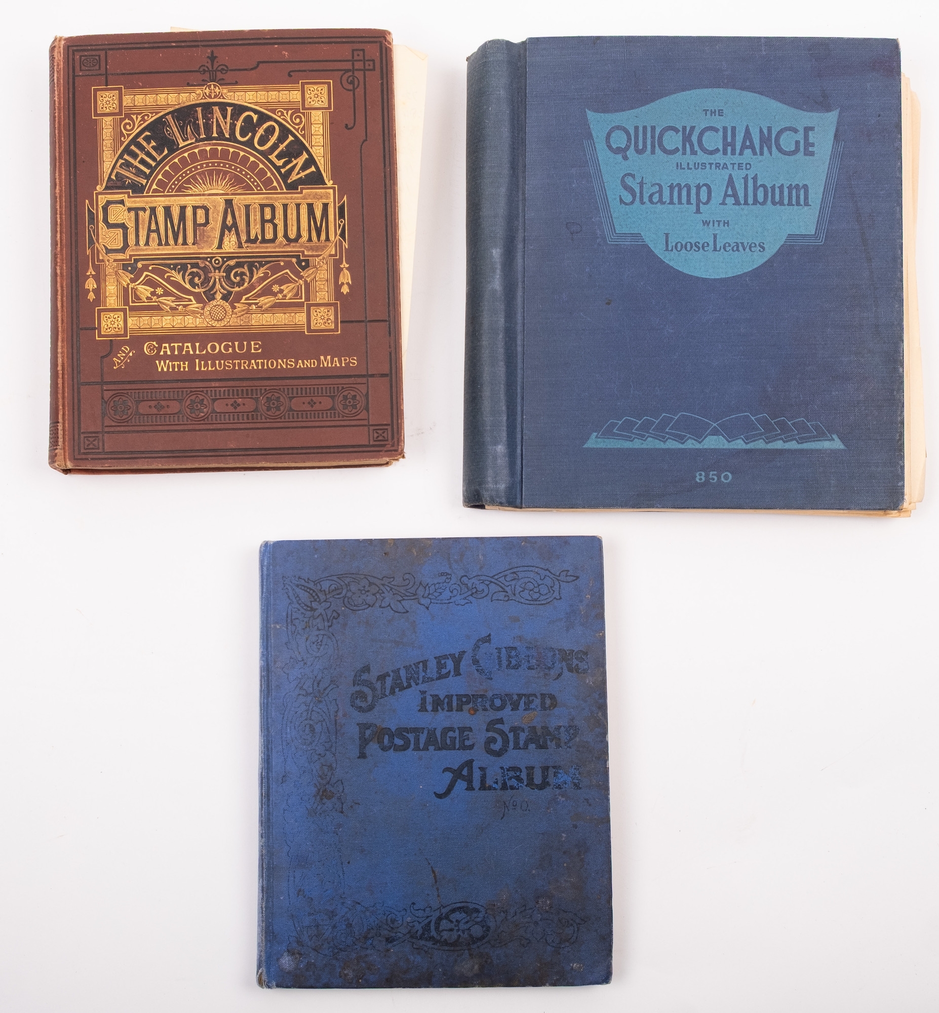 World and China. A collection of world stamps in three albums, with strength in an intact Lincoln album, noted 1840 1d Black 4 margins (stuck down), COGH 1/- green with complete margins, and China Dragons. Plenty of oldies, so needs viewing, but some stuck down so with care!