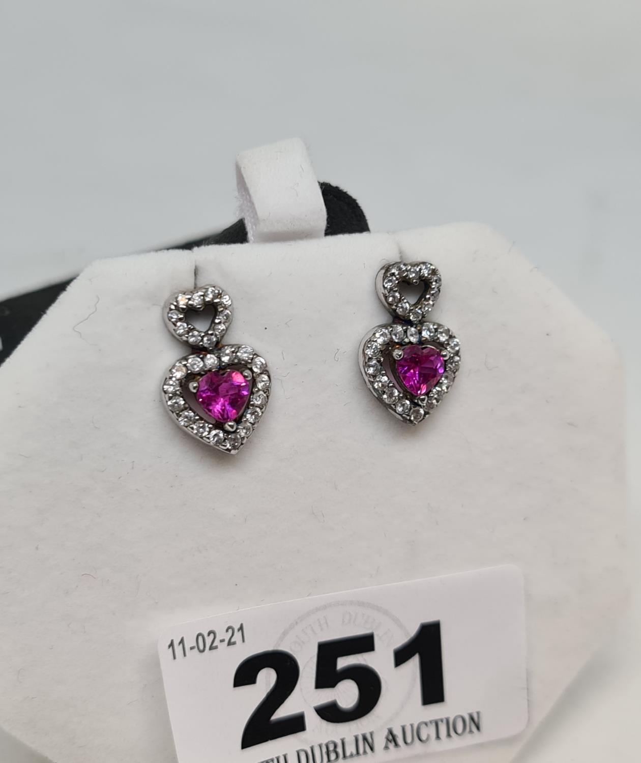 Silver ruby heart ear rings