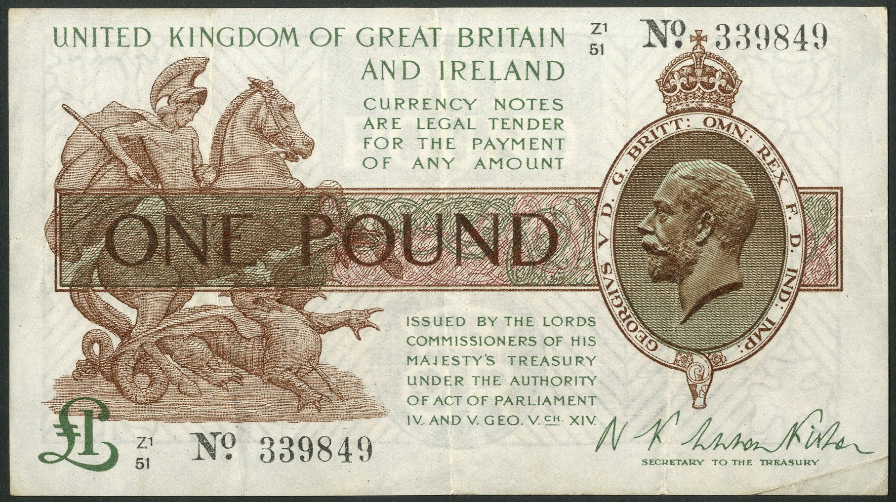 Treasury, N.F. Warren-Fisher, Second issue, 1 pound, [1923], Control Note, #Z1/51 339849 (EPM T31). VF.