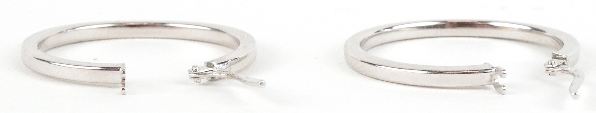 A pair of as new 9ct white gold hoop earrings retailed by Goldsmiths, with box, 2.6cm in diameter, total 1.4g.