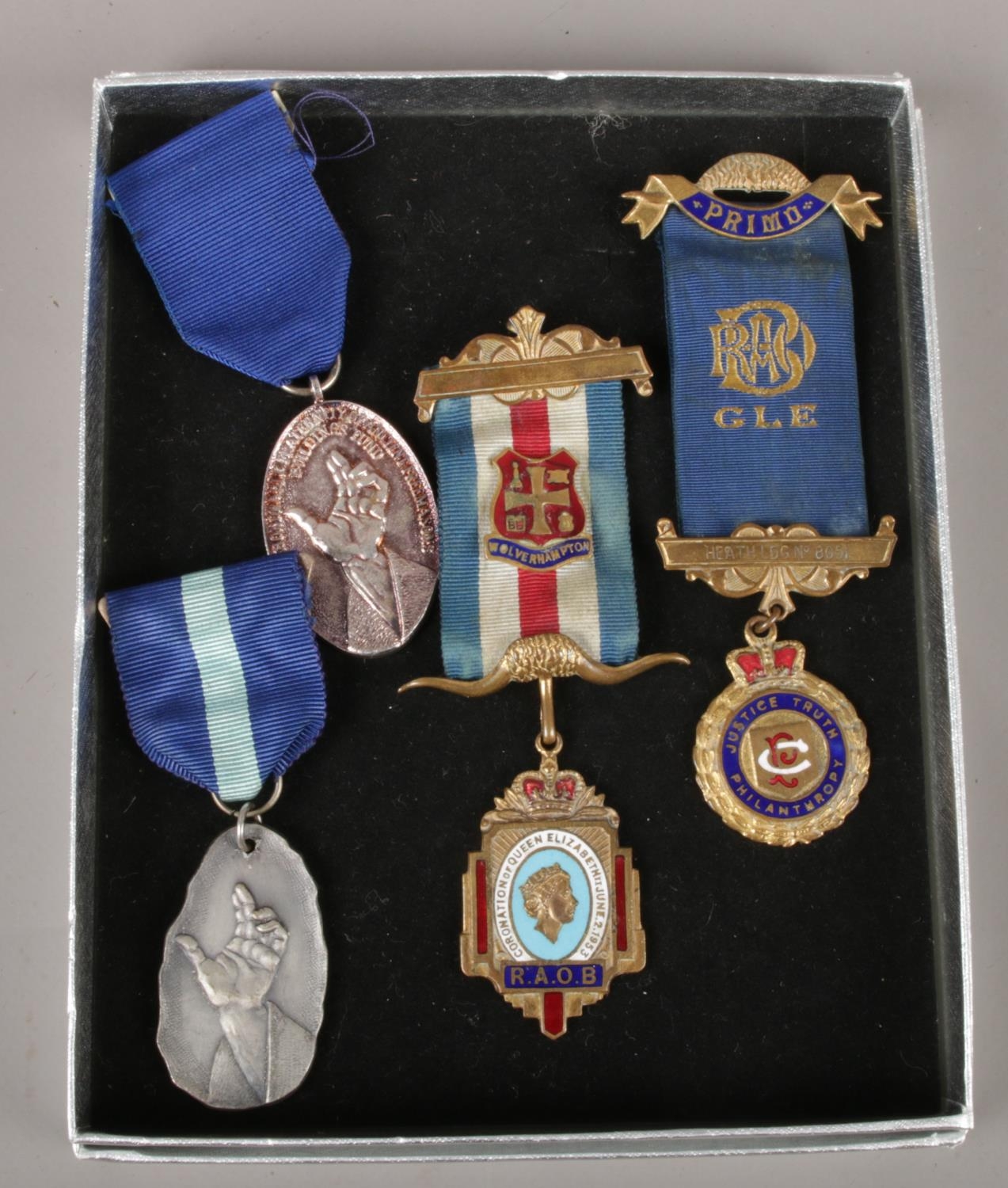 A collection of mostly RAOB enamelled medals. RAOB gilt metal and enamelled lodge jewel, detailed 'Bro William H. Holt raised 5-10-49' etc