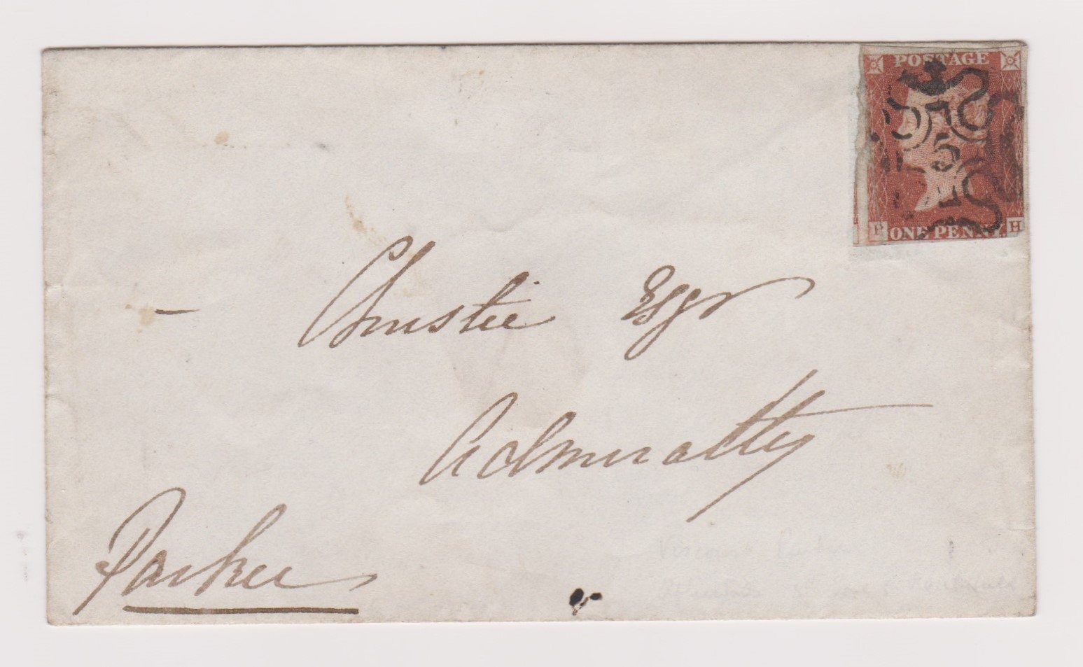 Great Britain 1841 era-envelope posted with SG8-1d stamp cancelled with Maltese Cross number 5 cancel