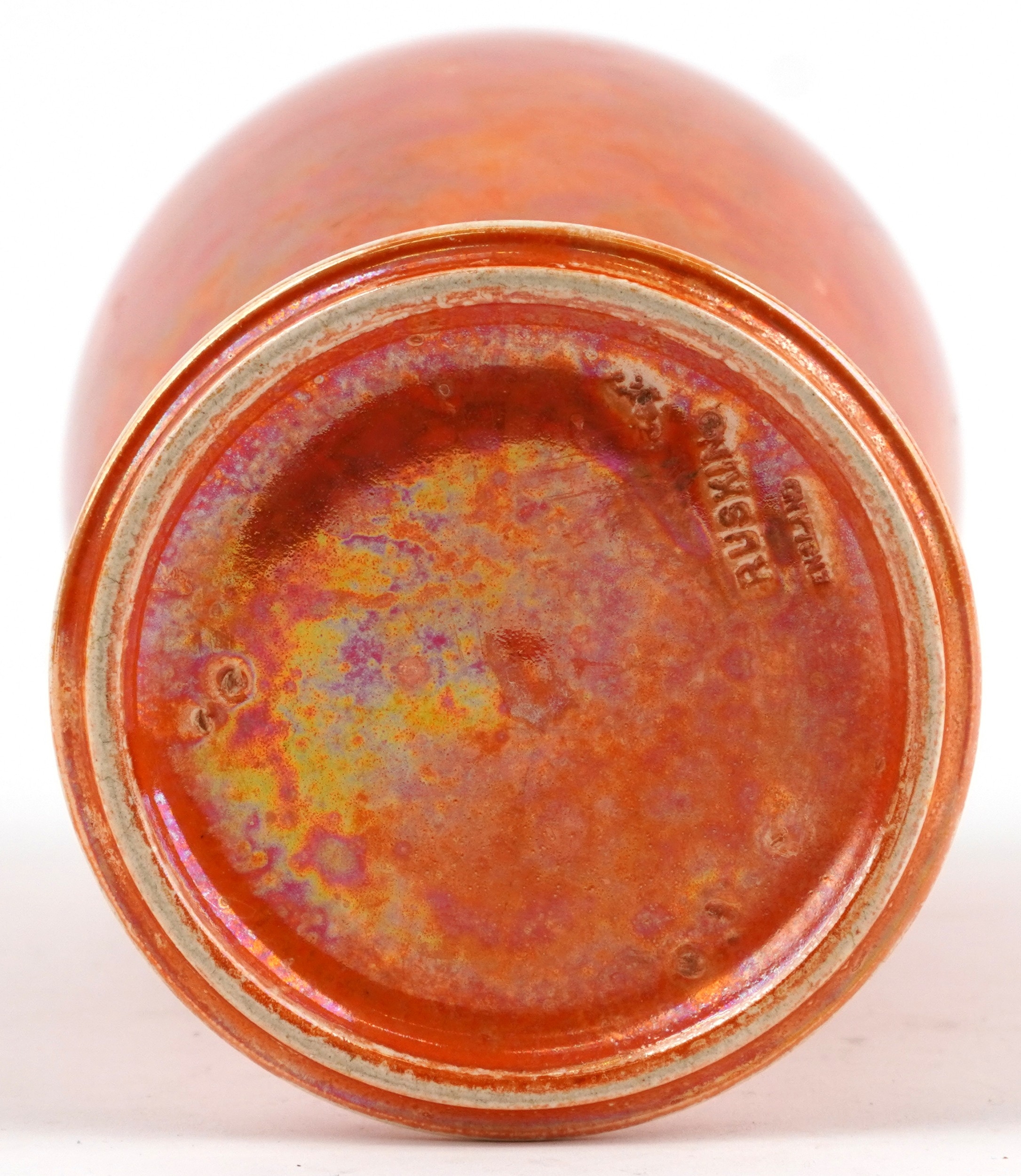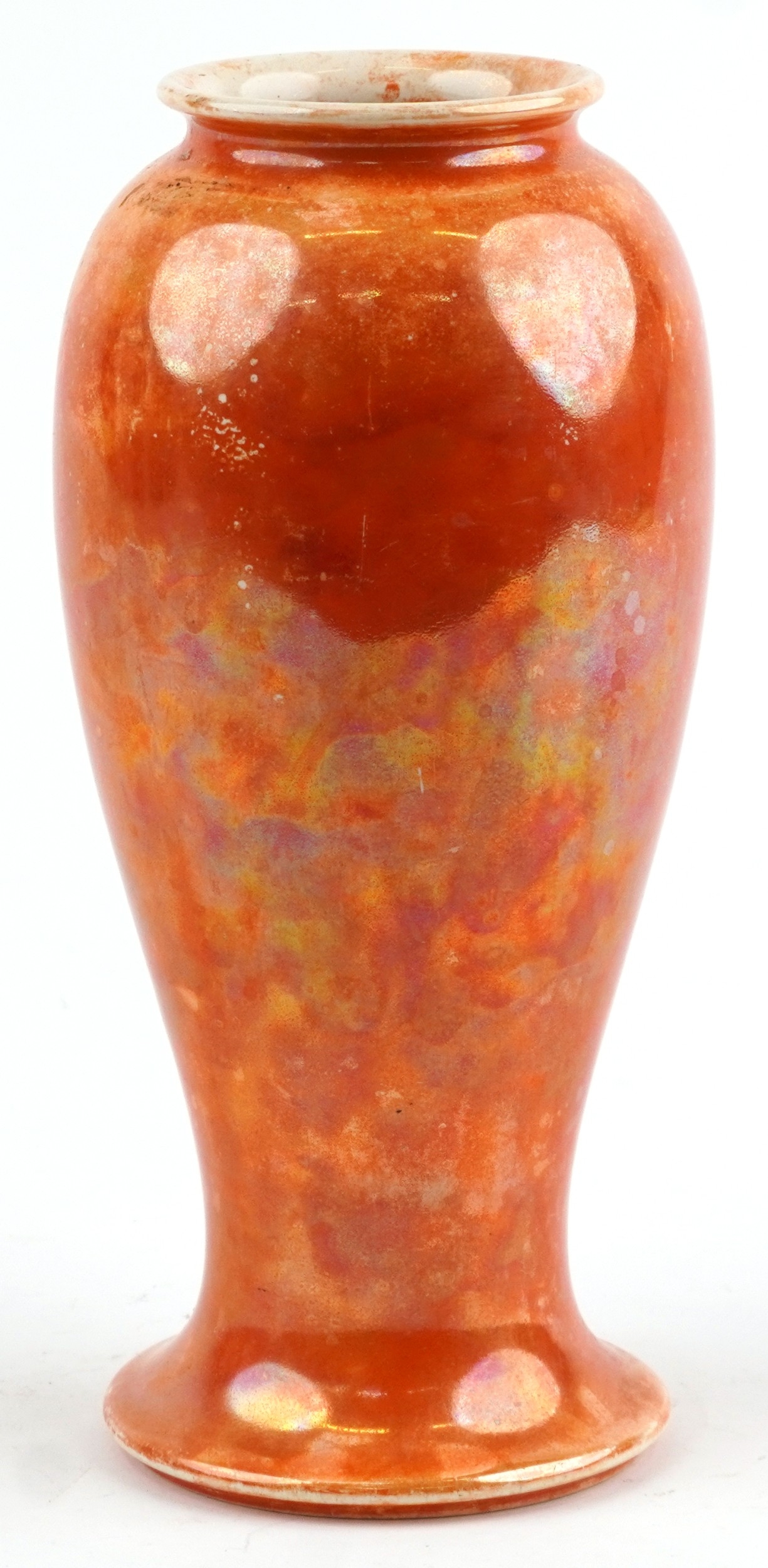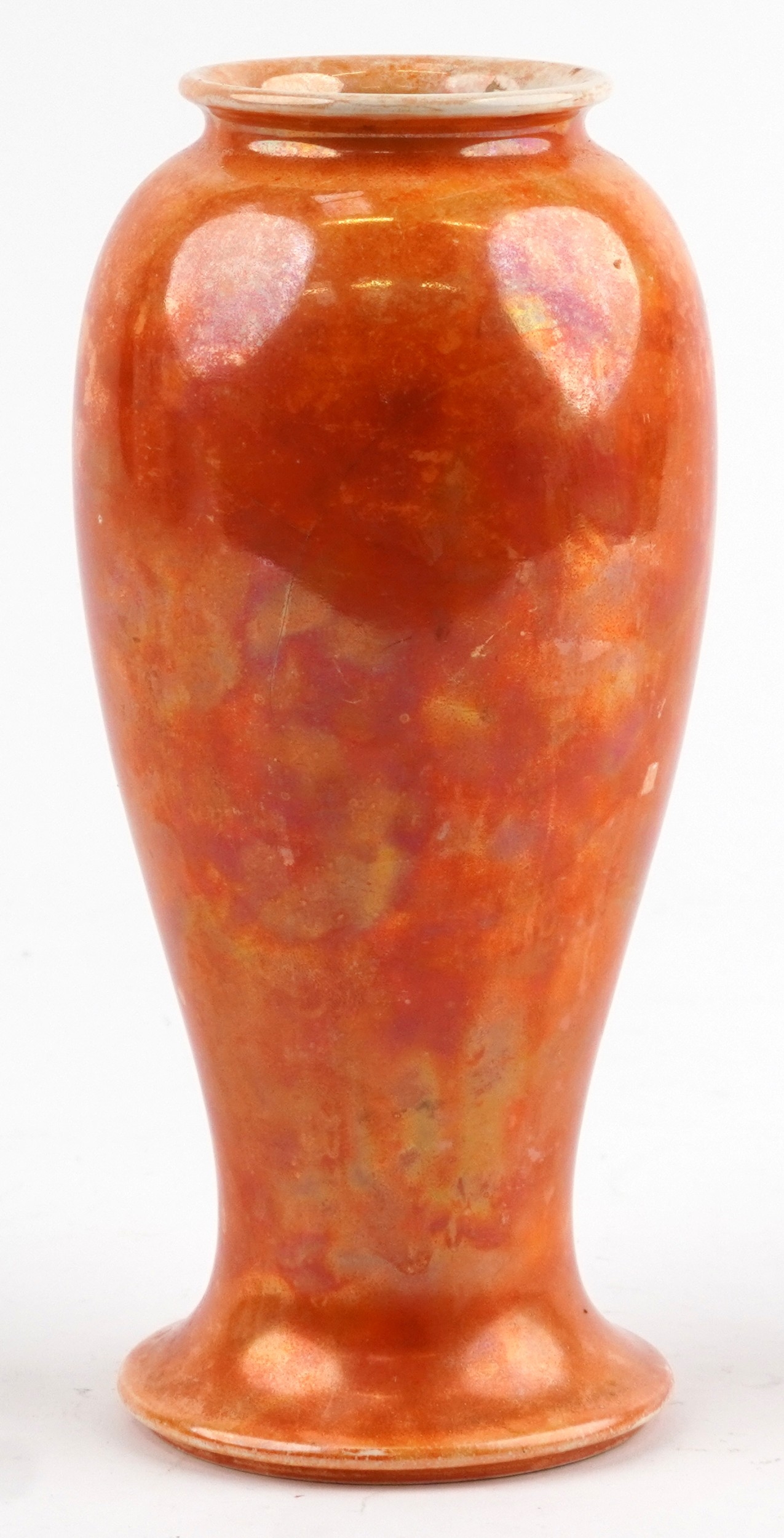 A Ruskin pottery orange lustre glazed baluster vase, 27.5cm high.