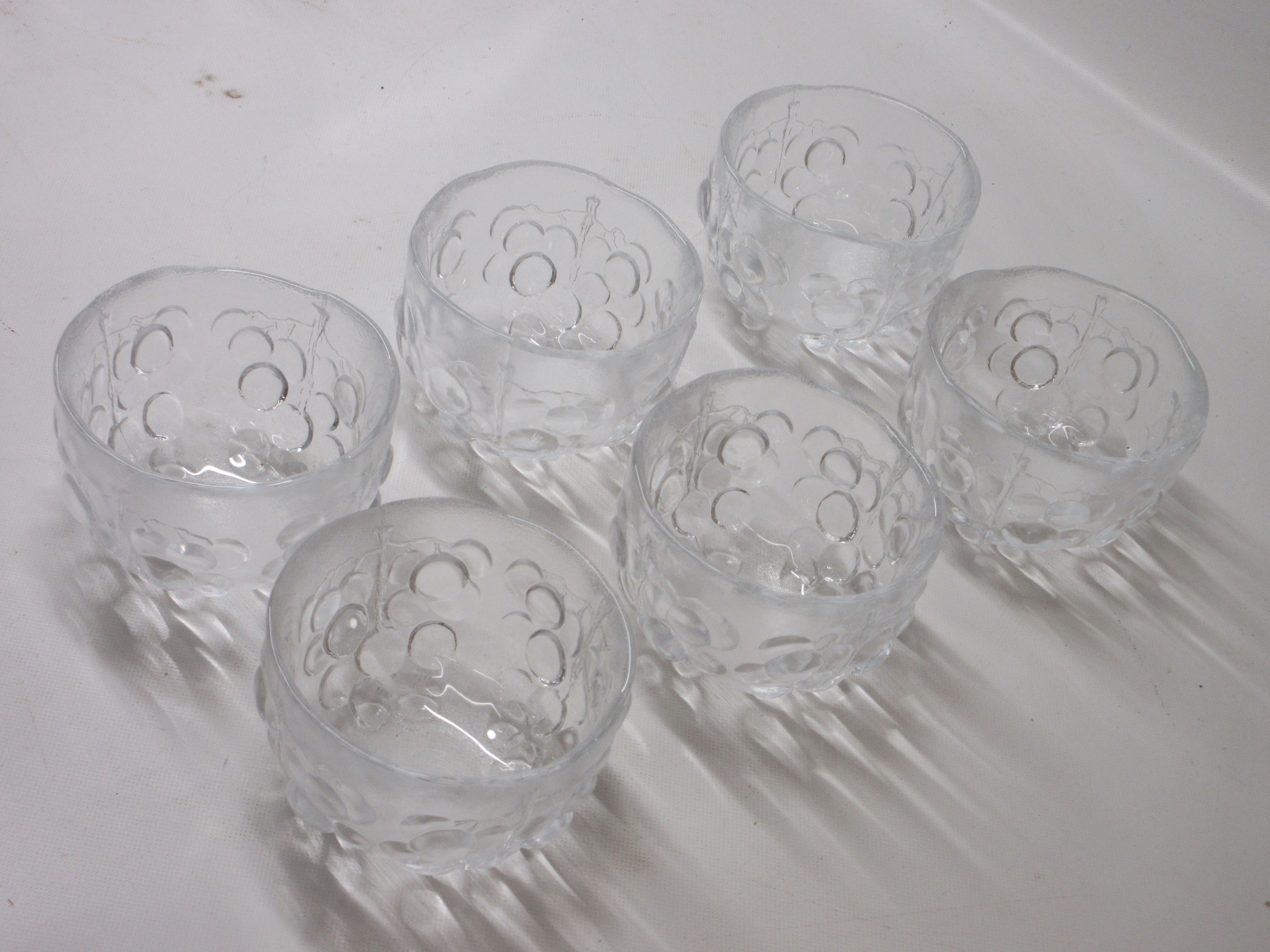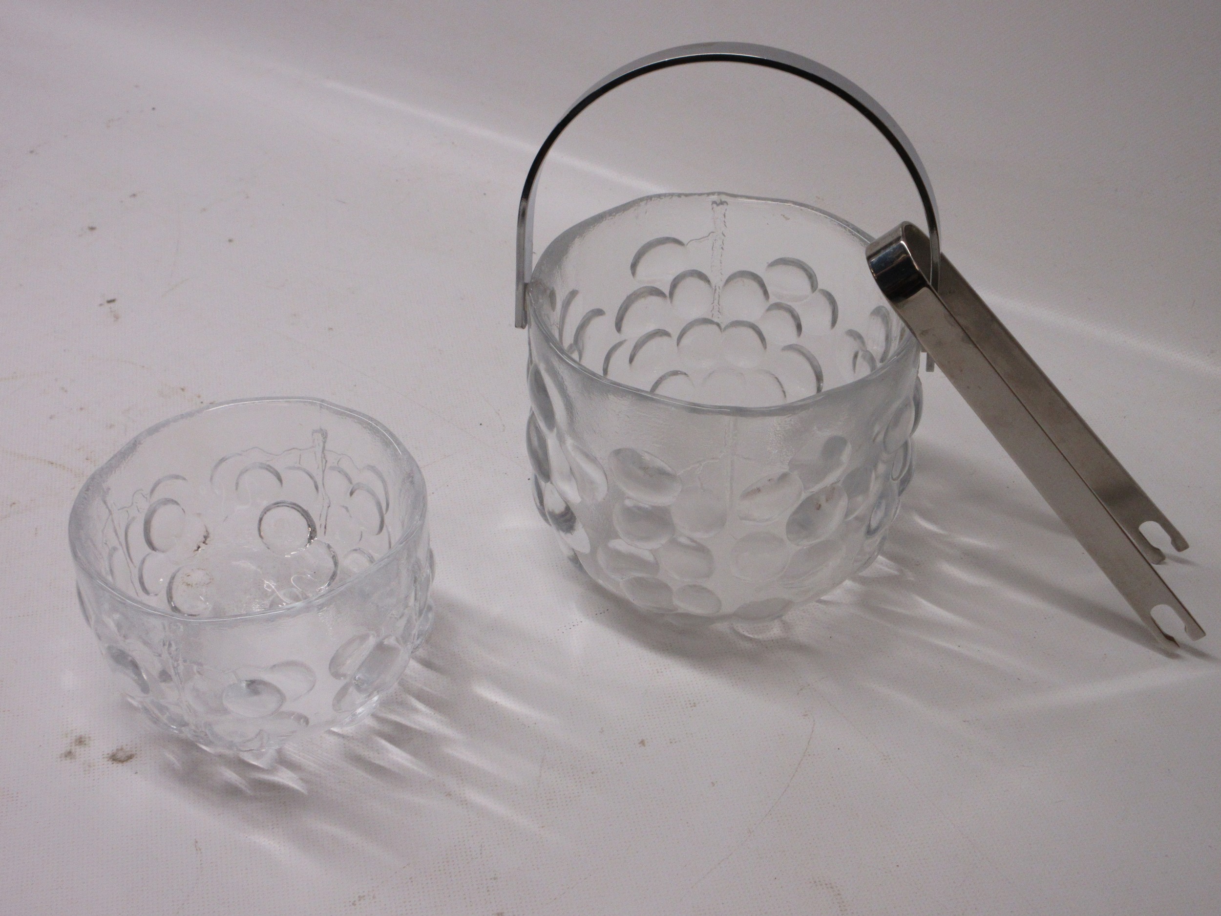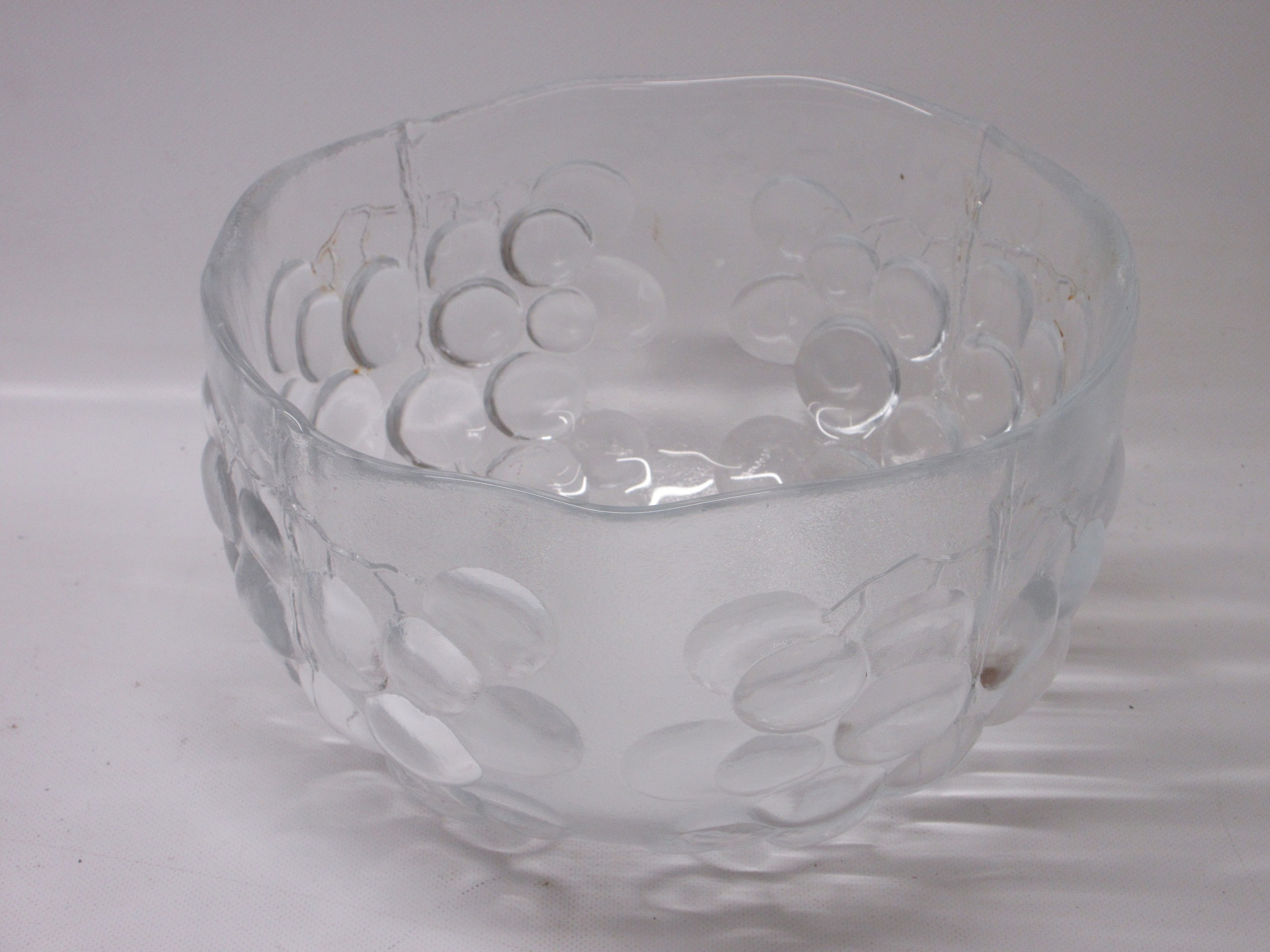 Kosta Boda Sweden, grape design glassware, six bowls, one matching fruit bowl, one ice bucket with tongs and one fruit platter Qty. 1 box