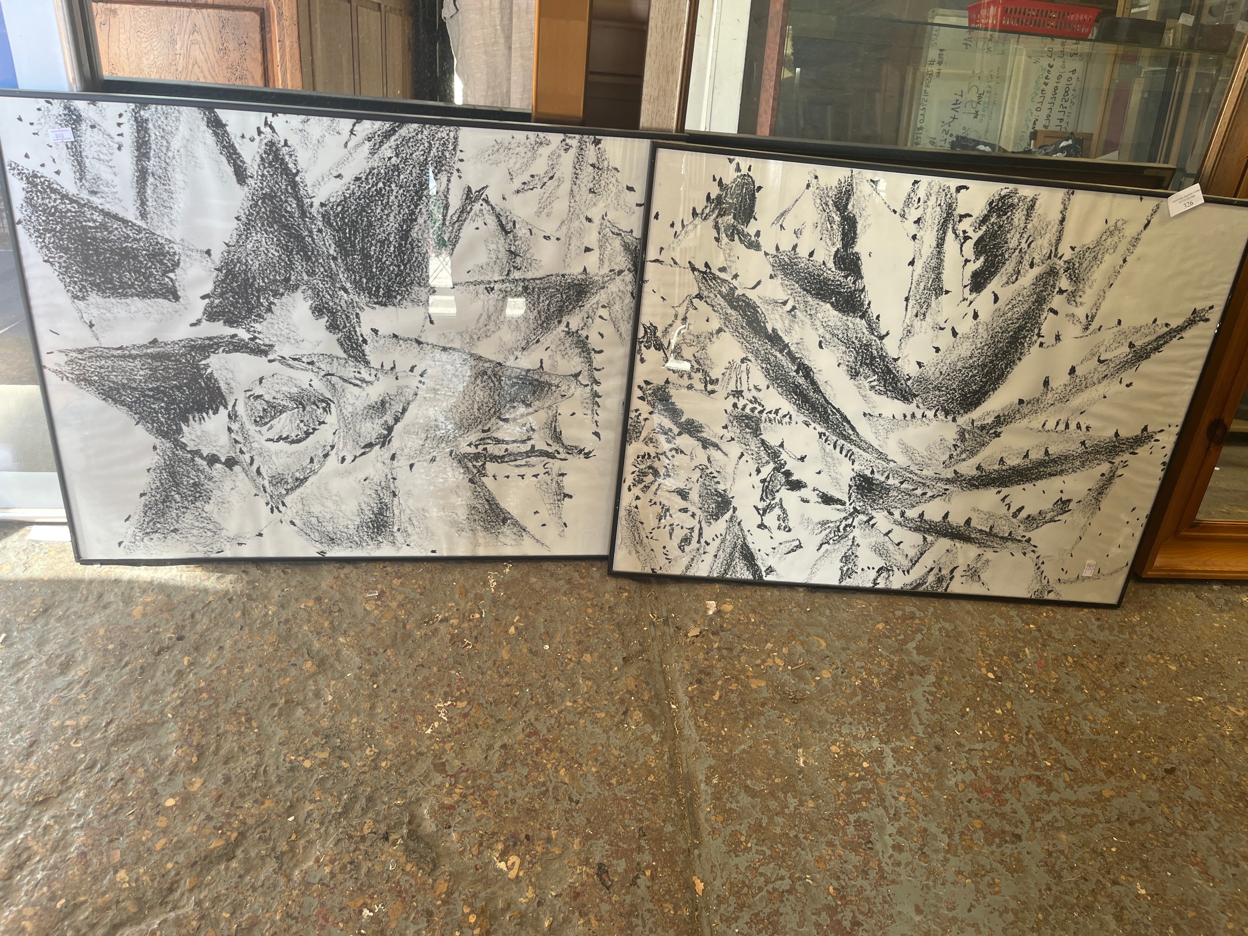 A pair of abstract art original flower paintings