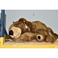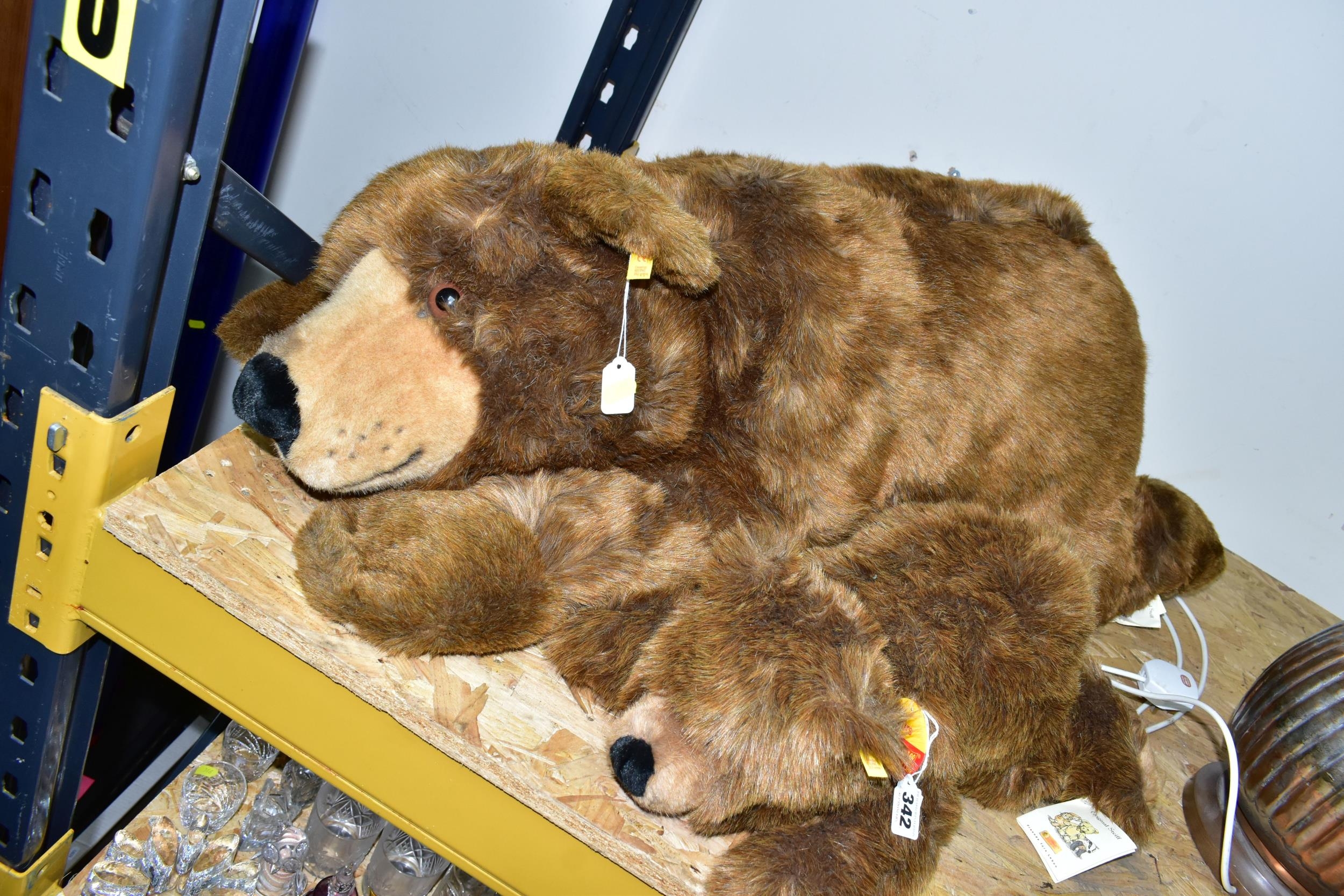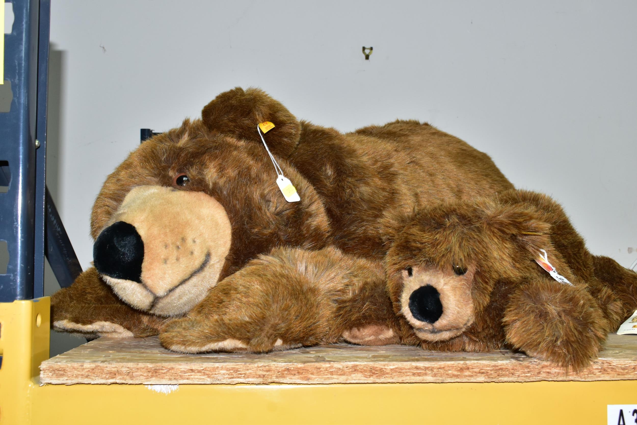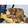 MOTHER AND BABY STEIFF BEARS, both have yellow ear tags and brass buttons, original paper labels still attached, the mother bear is numbered 069987 Braunbar - 110, the bear cub is numbered 069666 URS Braunbar - 45 (2) (Condition Report: both appear in good condition)