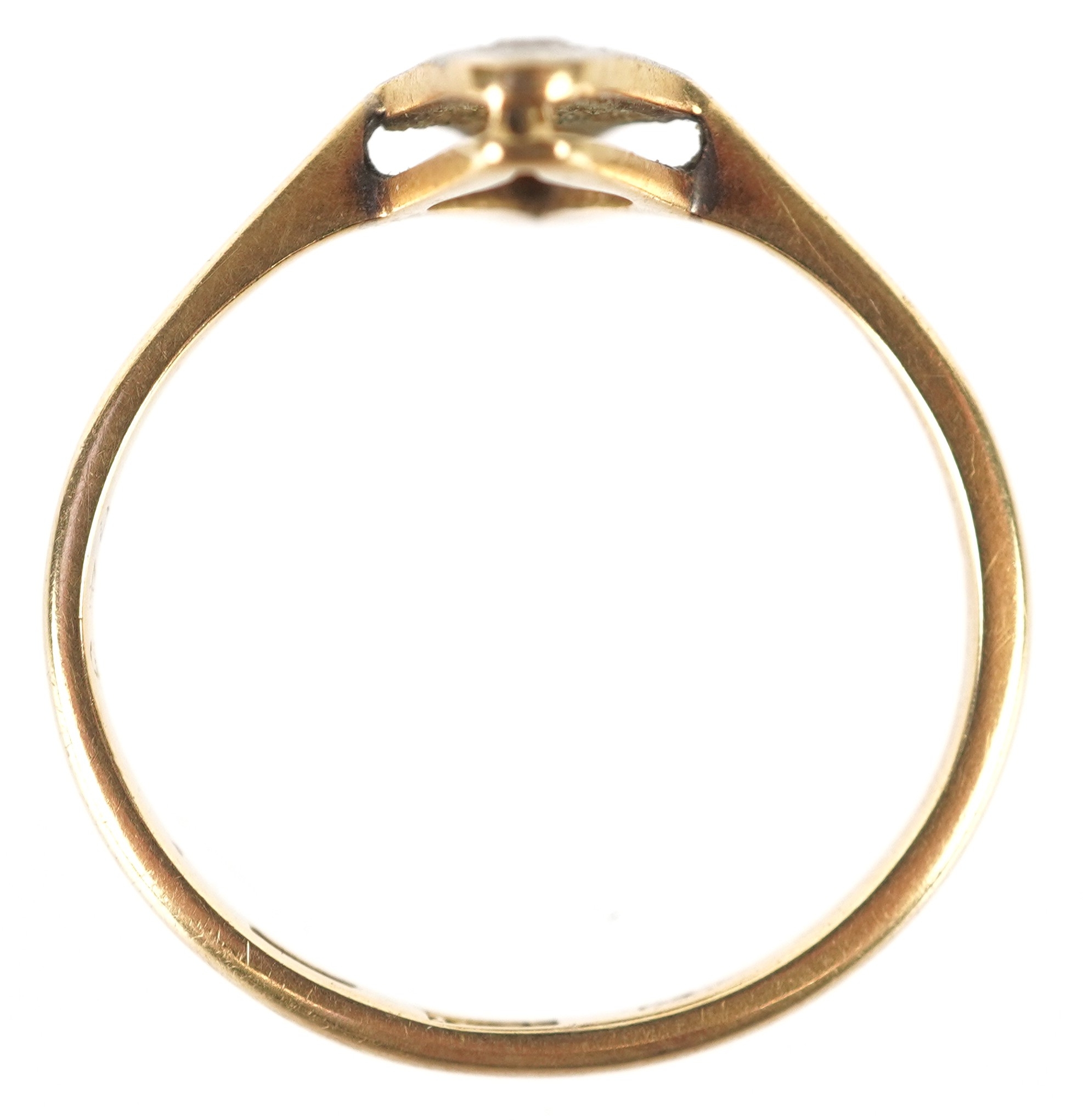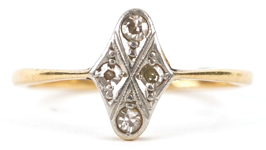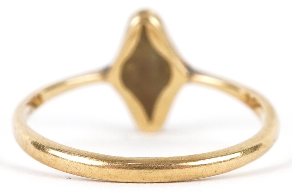 An 18ct gold diamond marquis ring, size L, 1.9g.