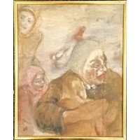 Jim Gilbert (1933-95) oil painting on canvas 'Sheila drunk' with annotation to the reverse - 53cm x 43cm